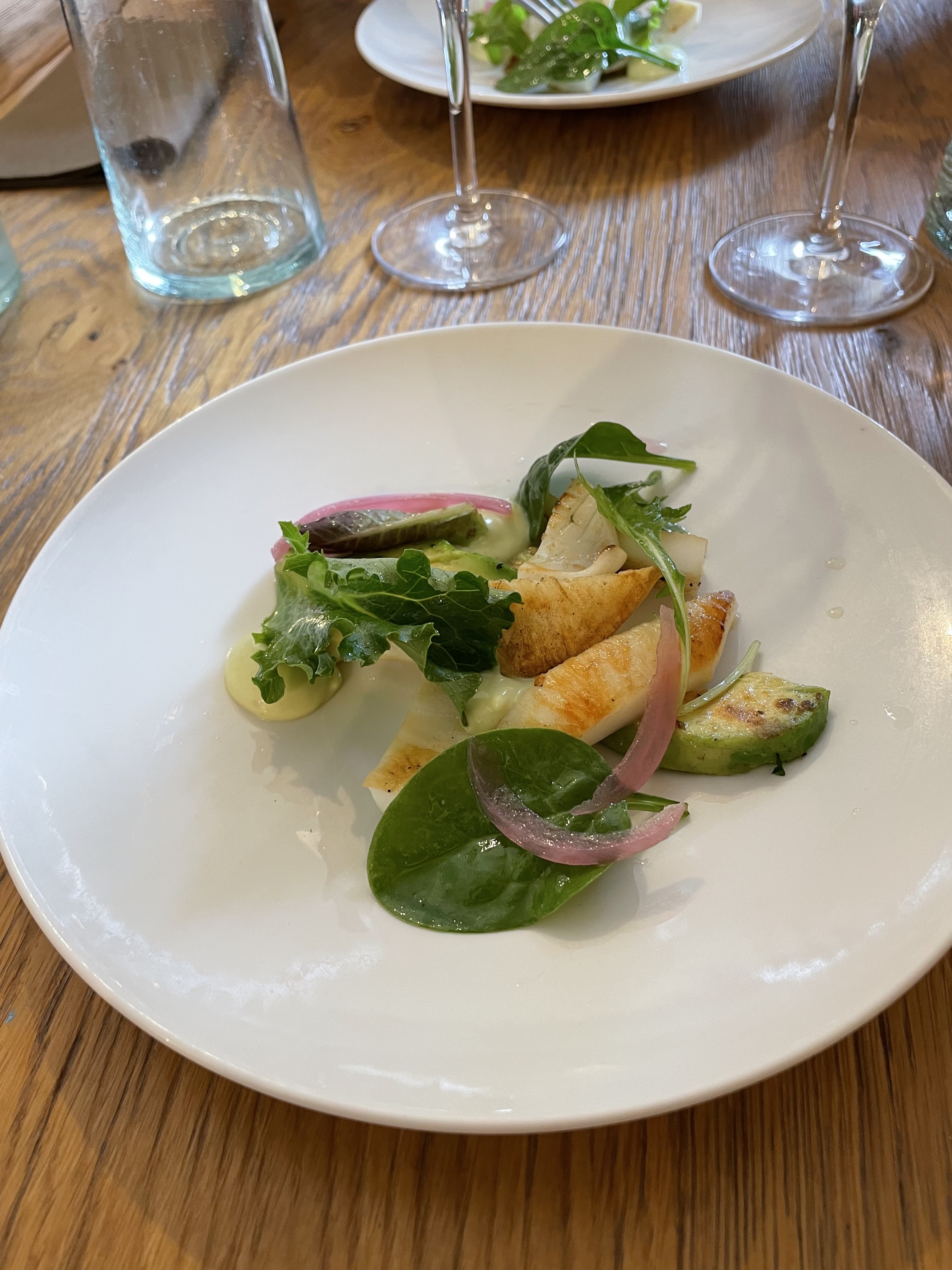 Je viens de voyager à travers l'Italie et j'ai pris de merveilleux repas, mais celui-ci surpasse tous les autres restaurants incroyables ! Des fleurs de courgettes délicatement farcies aux pignons de pin et une pointe de chorizo, suivies d'un poisson parfait, poêlé de langoustine et de moules sur un lit de chou finement coupé apportant une texture sucrée. Suivi d'un sorbet framboise, d'un biscuit sablé beurré aux framboises fraîches et mascarpone. Je suis mort et je suis allé au paradis de la nourriture !!! Chapeau bas au chef et propriétaire Antonin Wishart !!!