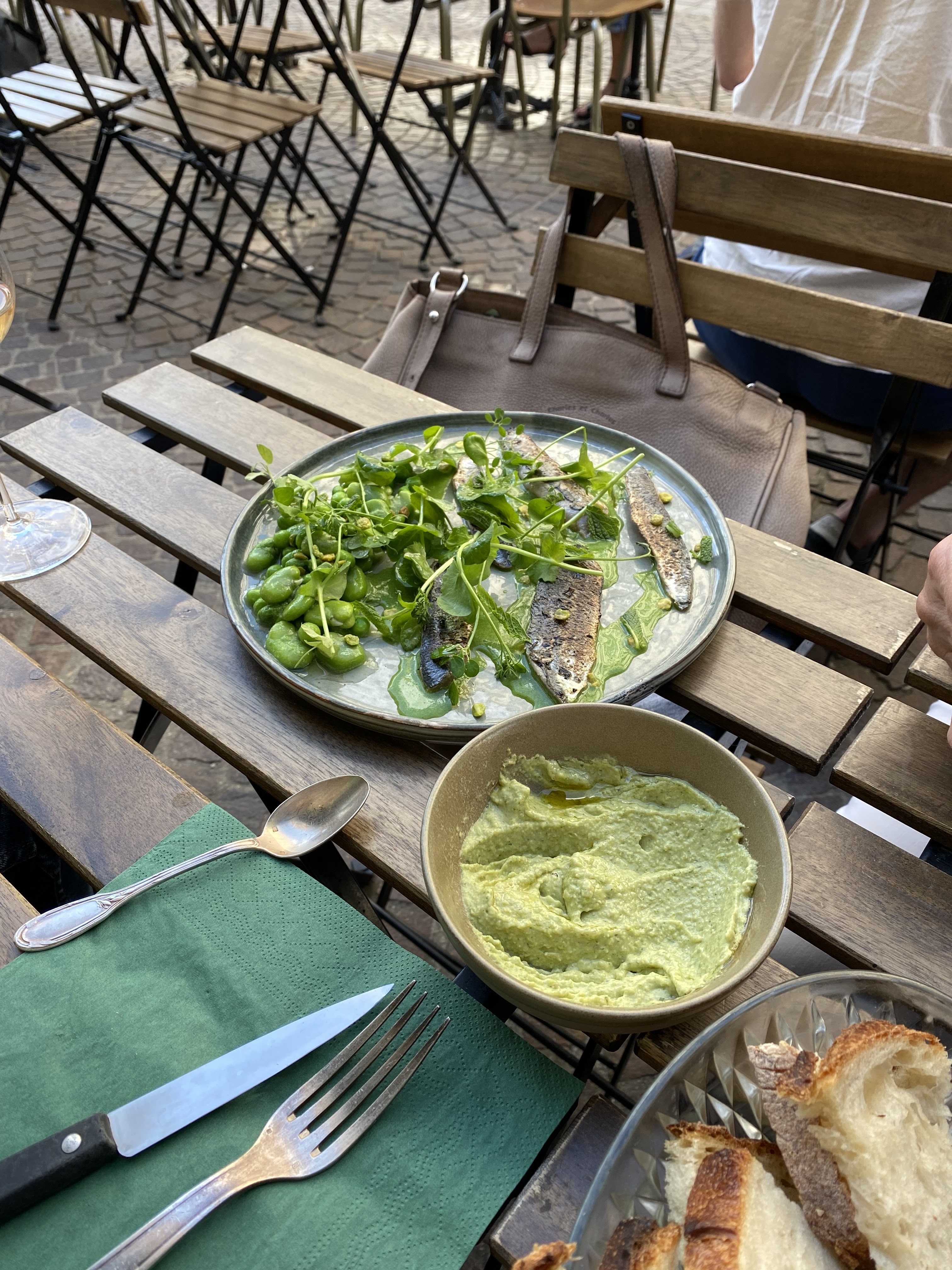 Très très bonne cuisine ! J'ai été agréablement surpris par leur houmous de petits pois, dont la consistance était parfaite. Gourmandise apportée en plus par ces petits pois frits. À la question qu'est-ce qu'on mange, foncez pour leur aranchinis au céleri s'ils sont à la carte. Un envol et un régal directement en Italie. Sans oublier leur tarte au citron, dont je n'ai même pas eu la force de prendre de photo, tellement j'ai été emporté par mes coups de cuillère.