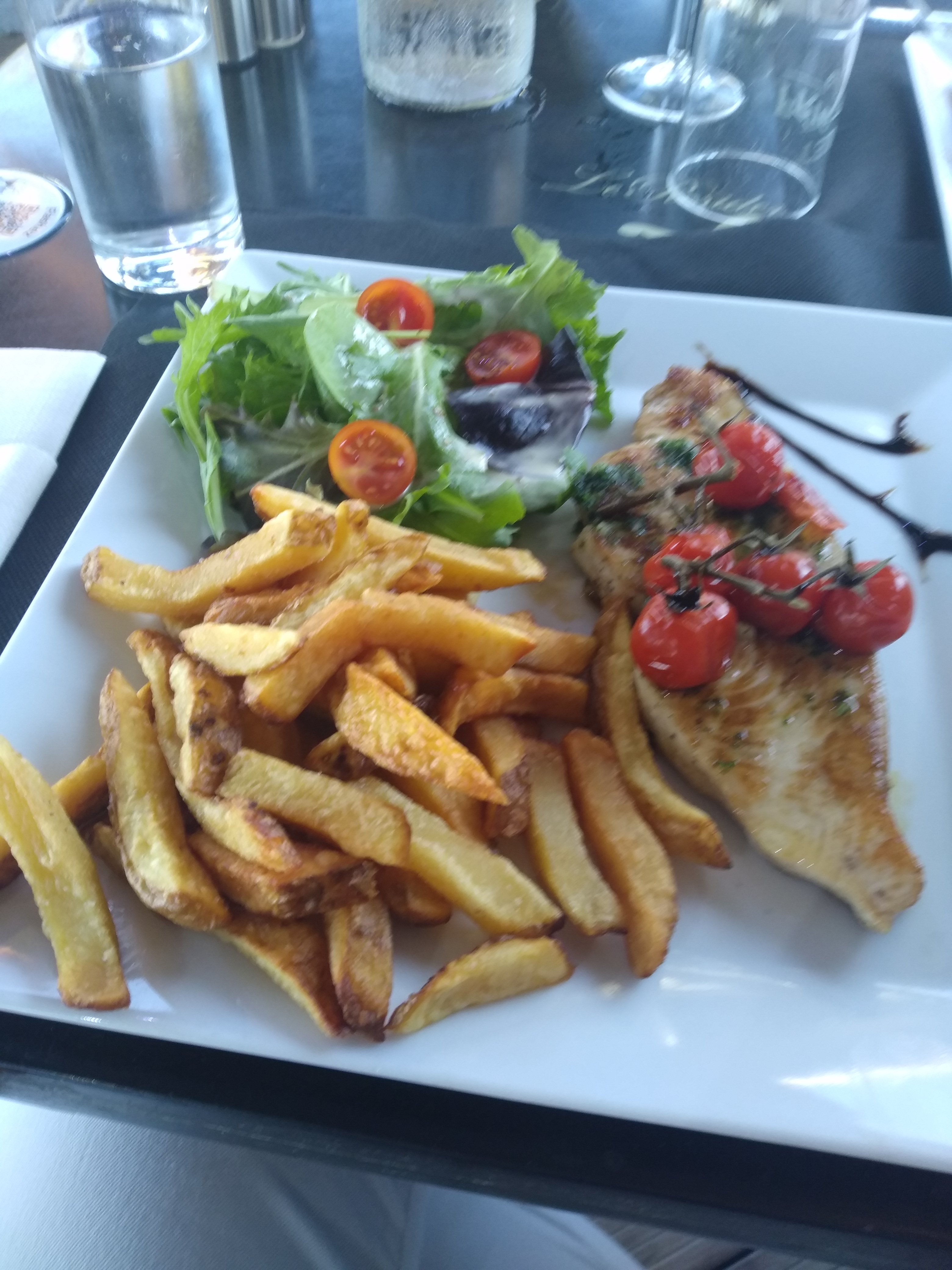 Beau cadre je regrette juste la soupe de poisson pas chaude...les moules bien trop salées et nous avons demandé 2 fois une carafe d eau mais elle n est jamais venue ...nous sommes donc rentrés à la maison pour nous désaltérer 😉 dommage