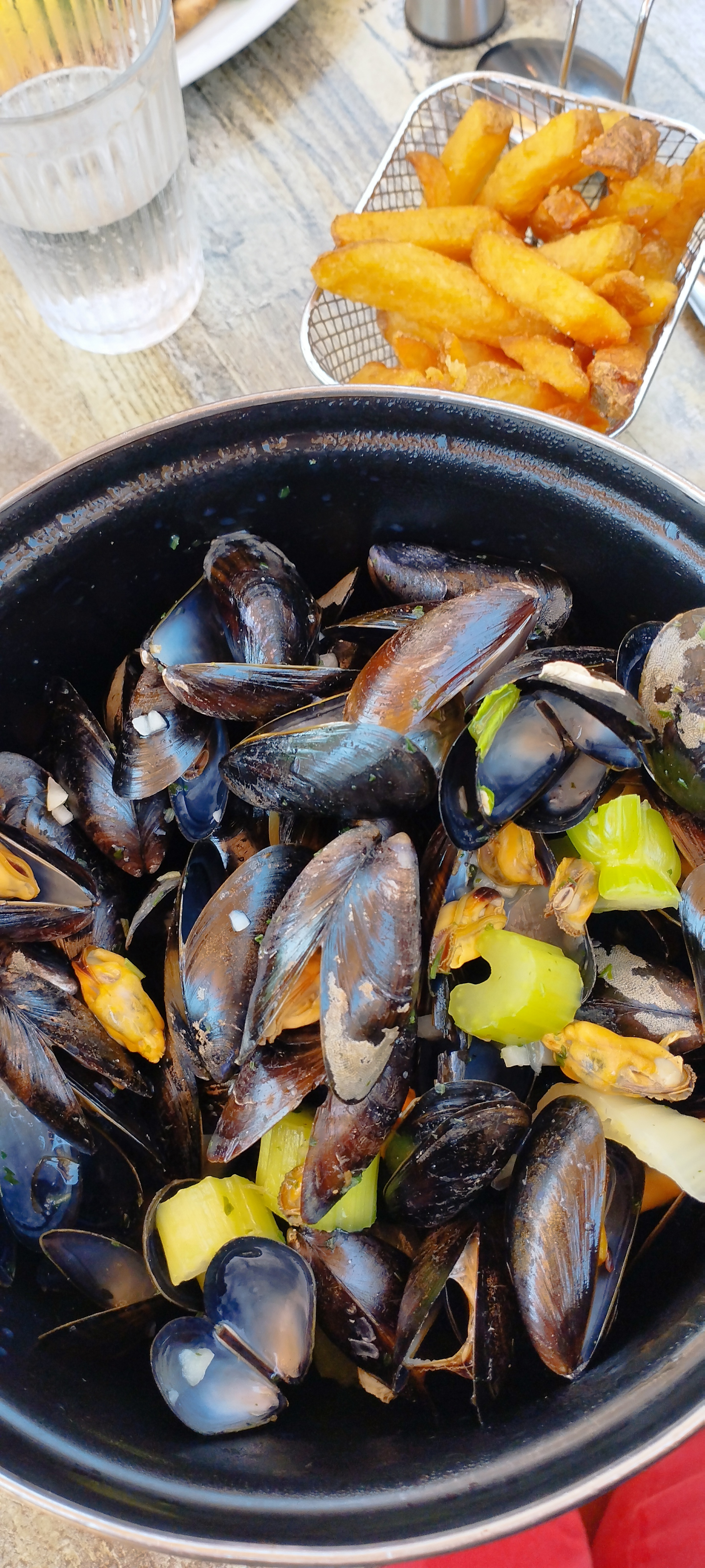 Déception! Moules minuscules et d’autres pas cuites, frites trop cuites et même brûlées. Alors, plat à déconseiller en Mai.