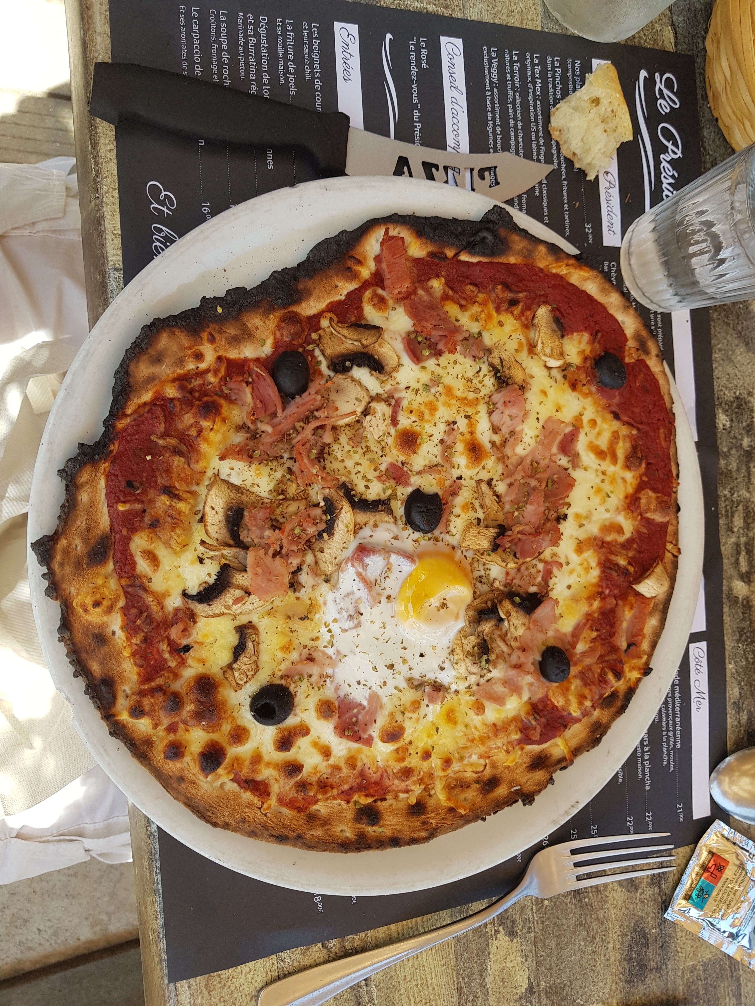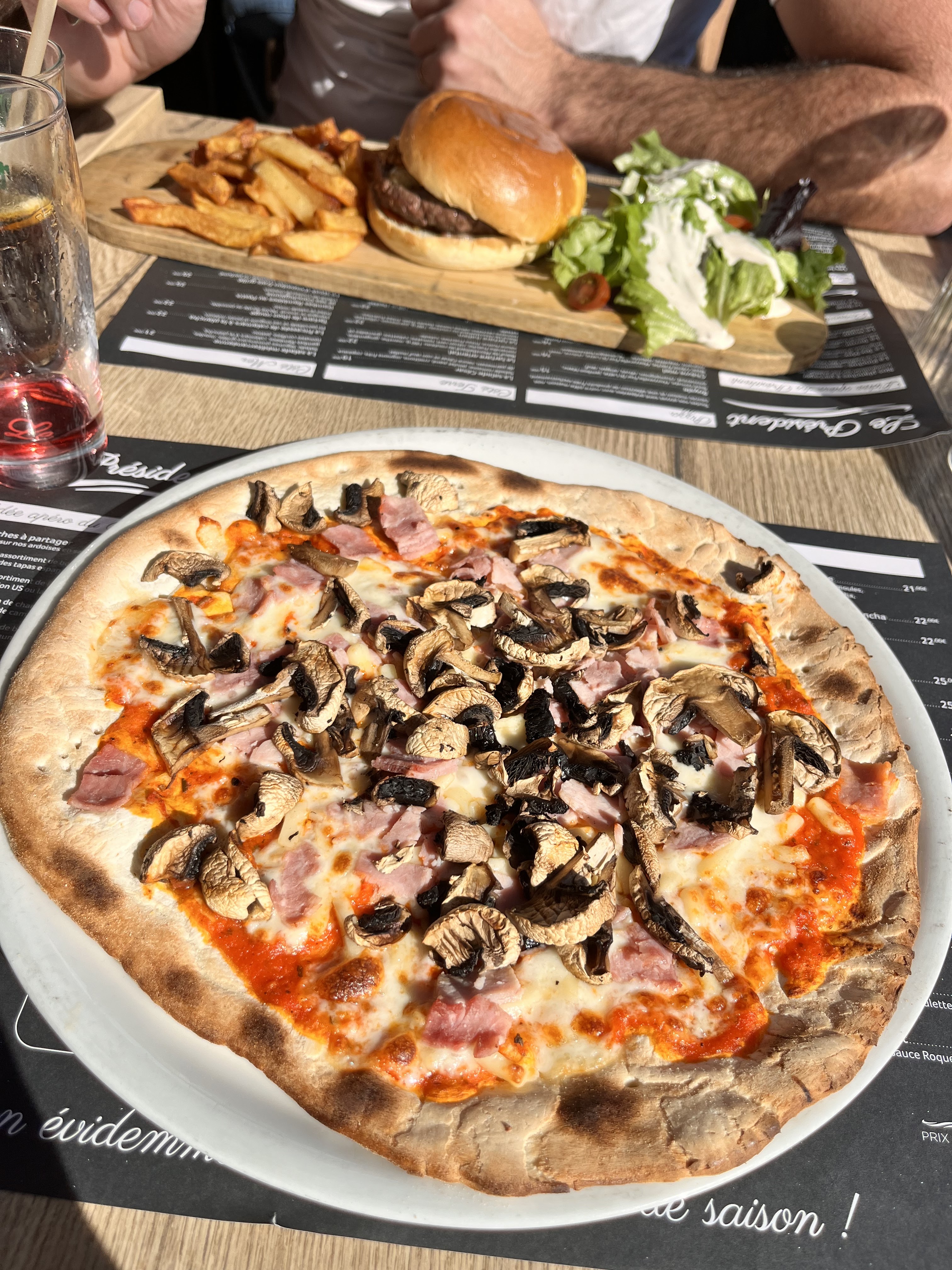Serveur sympathique. Les plats ont été servis très très rapidement, aucune attente. Les 2 jeunes de 18 ans ont apprécié les moules frites (1 crème et 1 roquefort). Pour ma part pizza 4 fromages pas terrible du tout. Nous étions le soir et avons été embêtés par des guêpes attirées par les moules, étant allergiques aux piqures, nous avons expédié le repas et pas pris de dessert.
