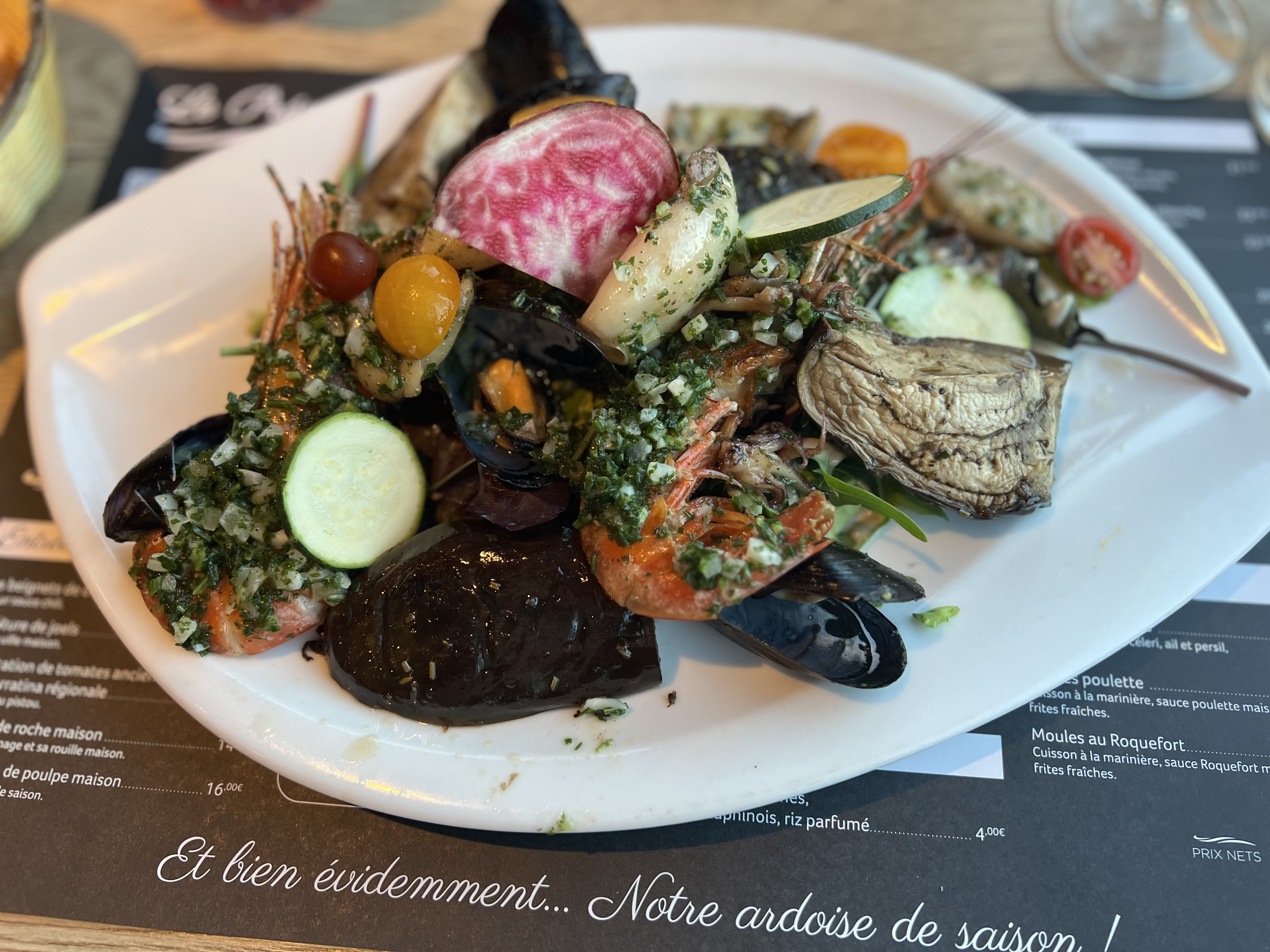 À éviter Client depuis de très nombreuses années nous avons toujours été enchanté de ce restaurant idéalement situé. 2024: Changement de programme...une cuisine des plus ordinaire. Des moules au roquefort avec une sauce des plus fade baignant dans une sorte de soupe au céleri ( moules marinières avec un rajout de crème épaisse soit disant au roquefort, ....) . Les moules n' étaient pas nettoyées. Service très bien ! . Mais Les locaux vont fuir et ça restera un attrape touriste !! À éviter Client depuis de très nombreuses années nous avons toujours été enchanté de ce restaurant idéalement situé. 2024: Changement de programme...une cuisine des plus ordinaire. Des moules au roquefort avec une sauce des plus fade baignant dans une sorte de soupe au céleri ( moules marinières avec un rajout de crème épaisse soit disant au roquefort, ....) . Les moules n' étaient pas nettoyées. Service très bien ! . Mais Les locaux vont fuir et ça restera un attrape touriste !!