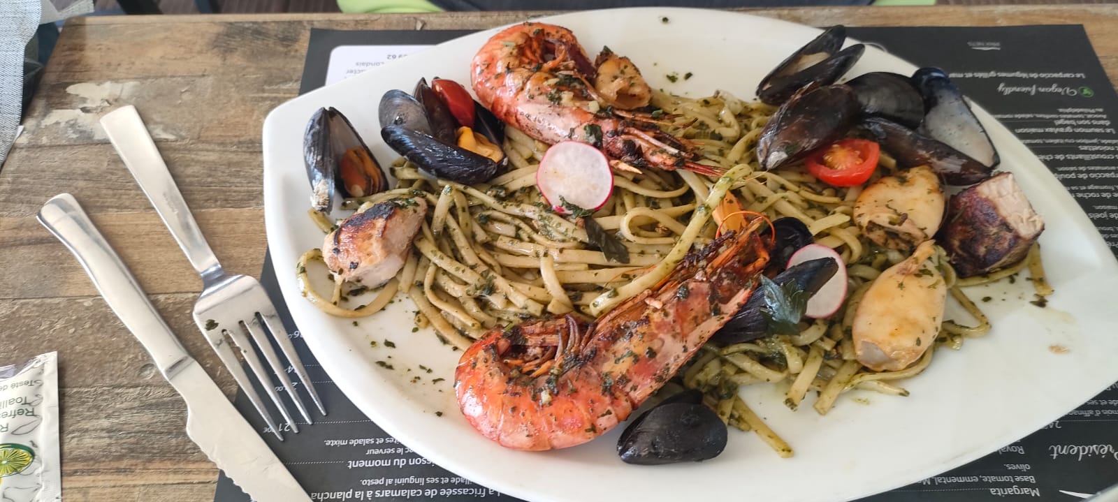 Restaurant au bord de mer, emplacement de rêve. Personnel sympathique linguini aux gambas très bonnes