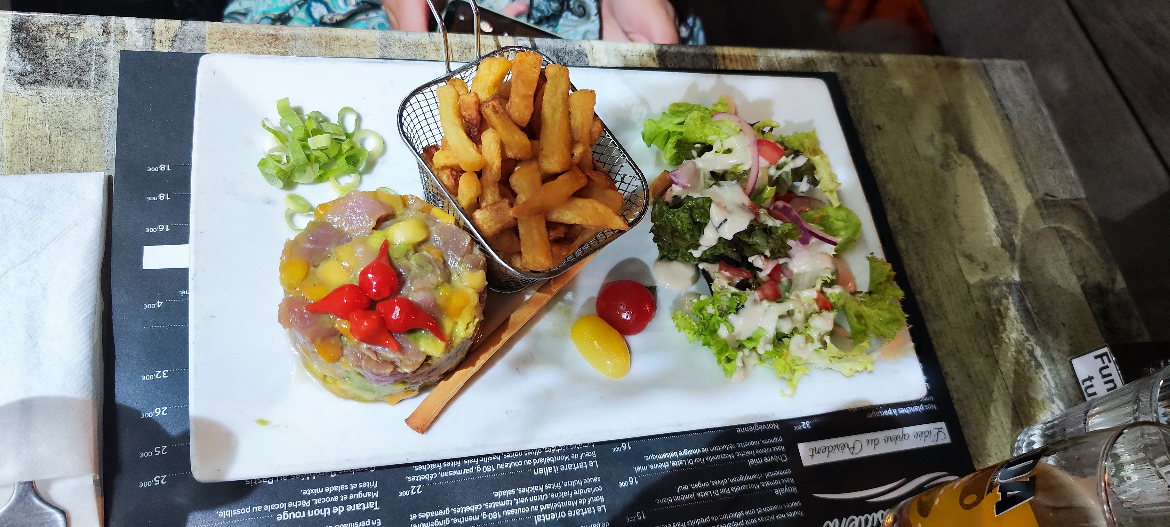 2ème fois que nous venons dans ce restaurant. Accueil chaleureux, jeunes serveurs très gentils, repas correct ainsi que le prix. Sur la photo tartare de thon rouge excellent. Je recommande fortement