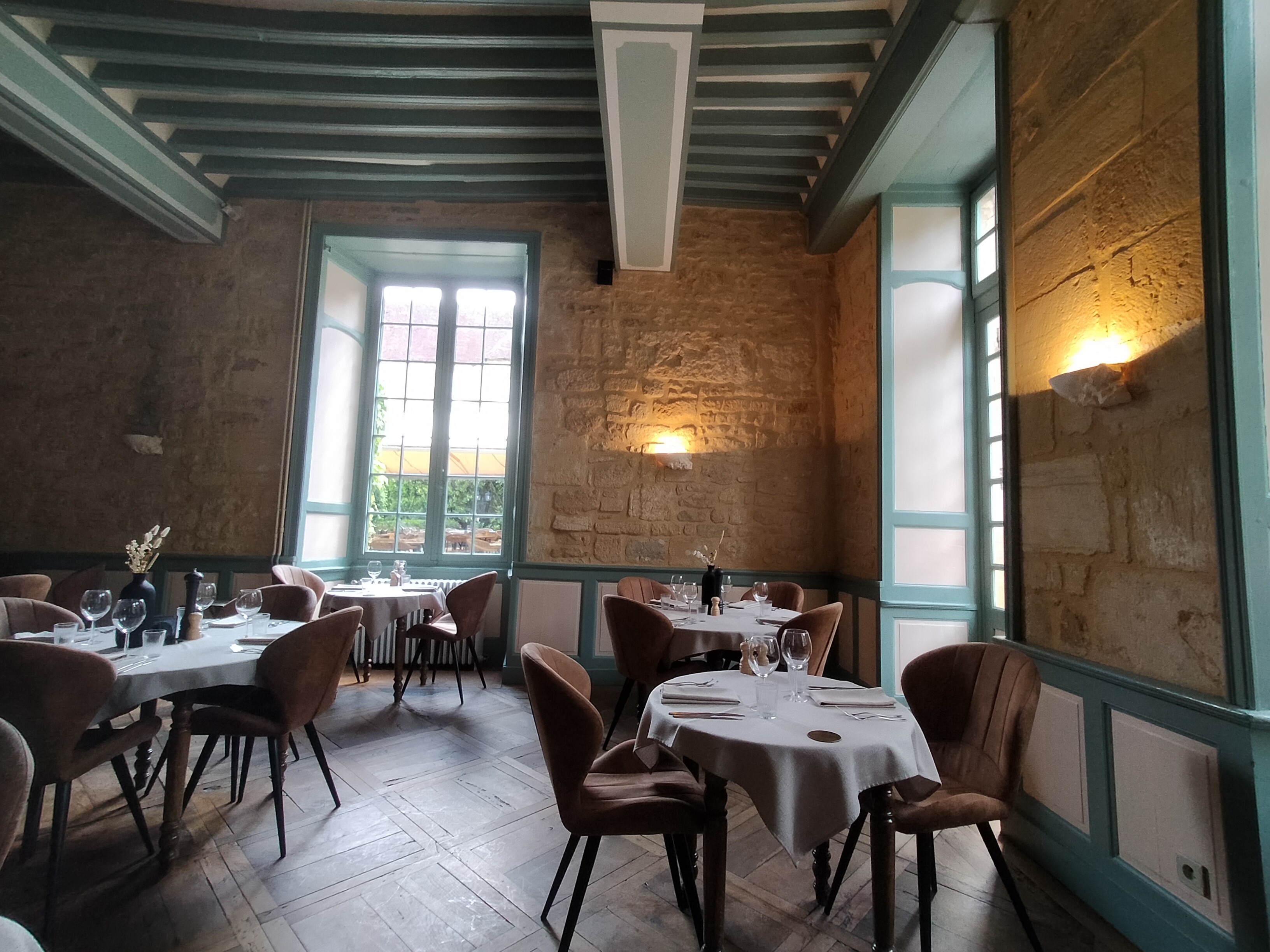 Endroit magnifique, terrasse très agréable avec vue sur la belle façade de cet ancien tribunal. Tout le charme de la pierre. Menu à 34€ parfait et prix très correct. Rien à redire, nous étions tous ravis... Moment gravé dans nos mémoires.
