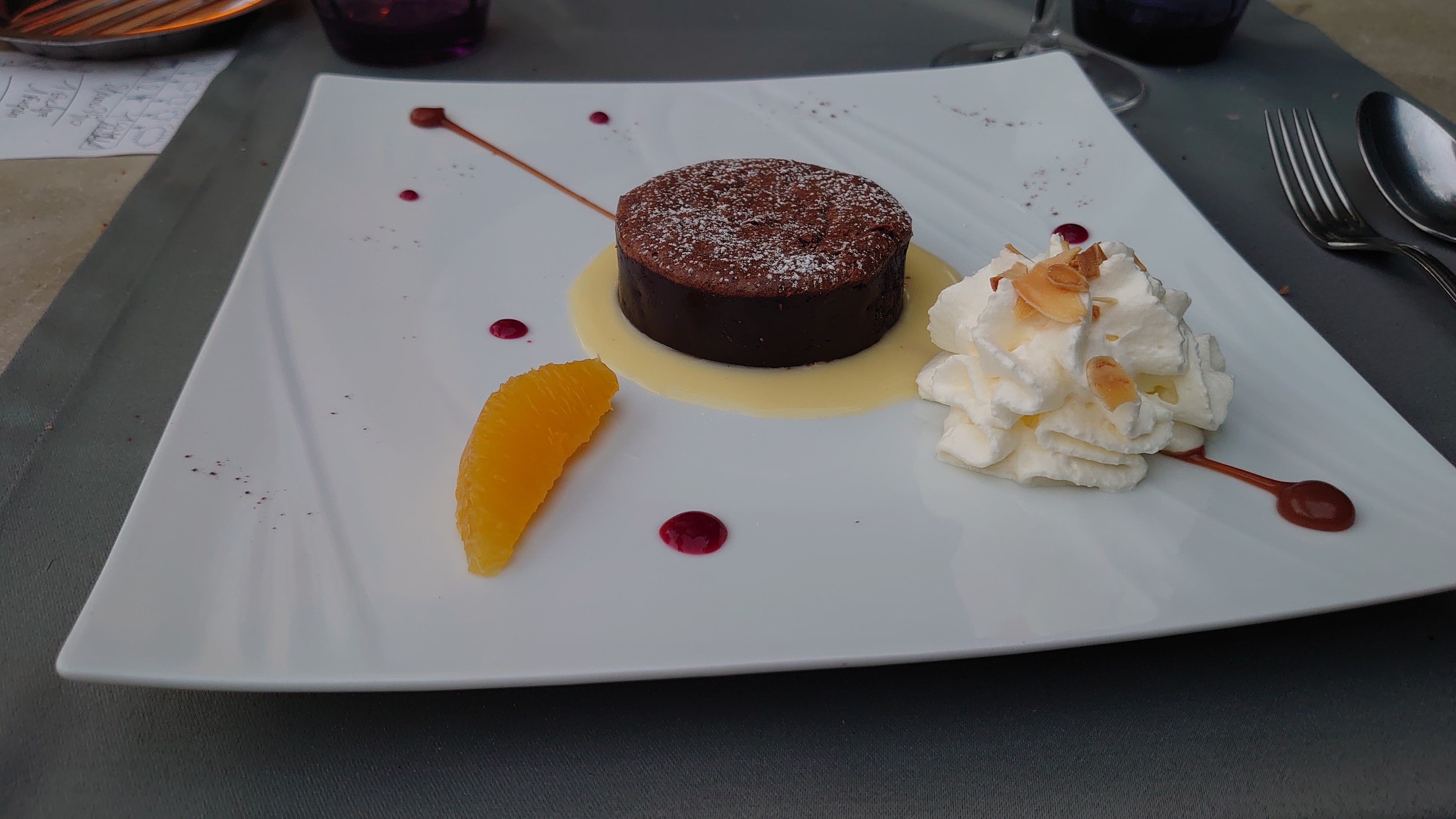 Très bon restaurant dans un cadre magnifique. Tout état parfait et délicieux. Juste un tout petit bémol, le fondant au chocolat était un peu trop cuit.