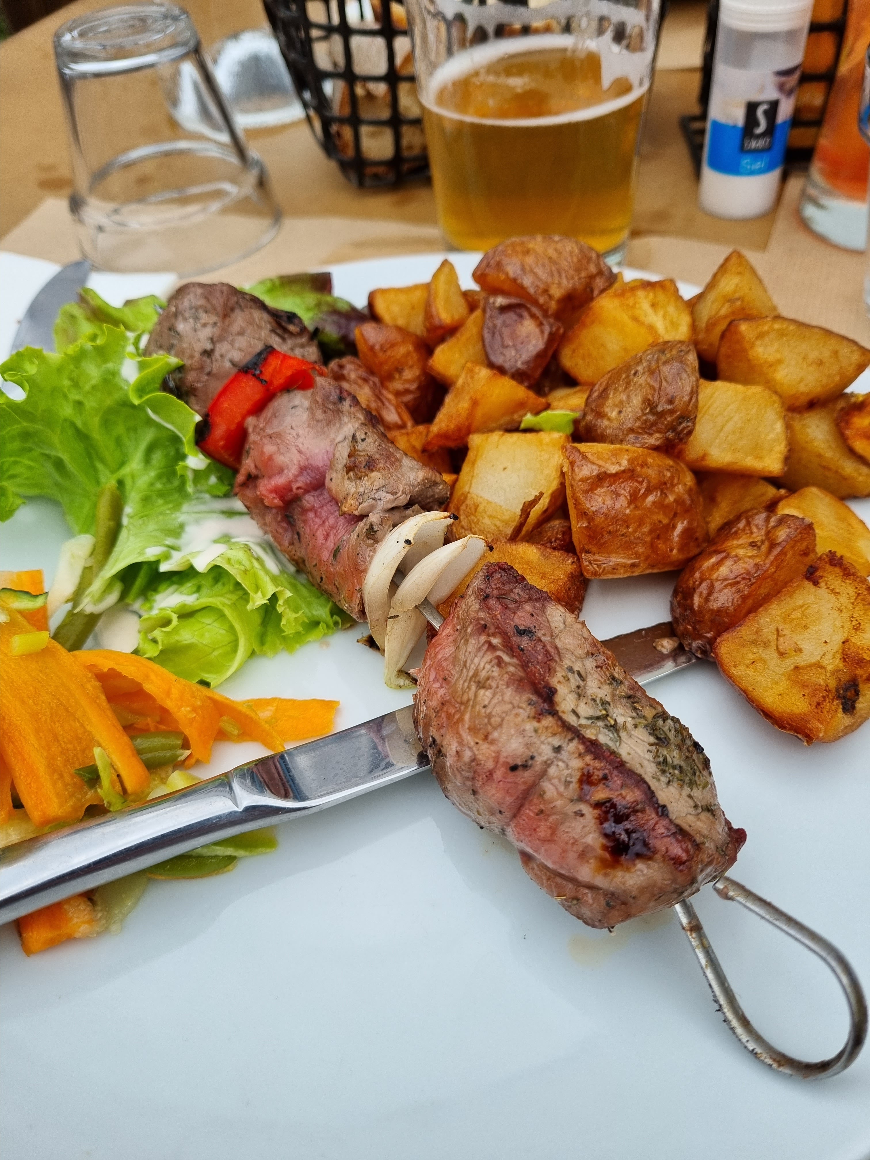 Joli petit repas sur l'île d'aix Très bonne brochettes de bœuf, table calme et personnel souriant