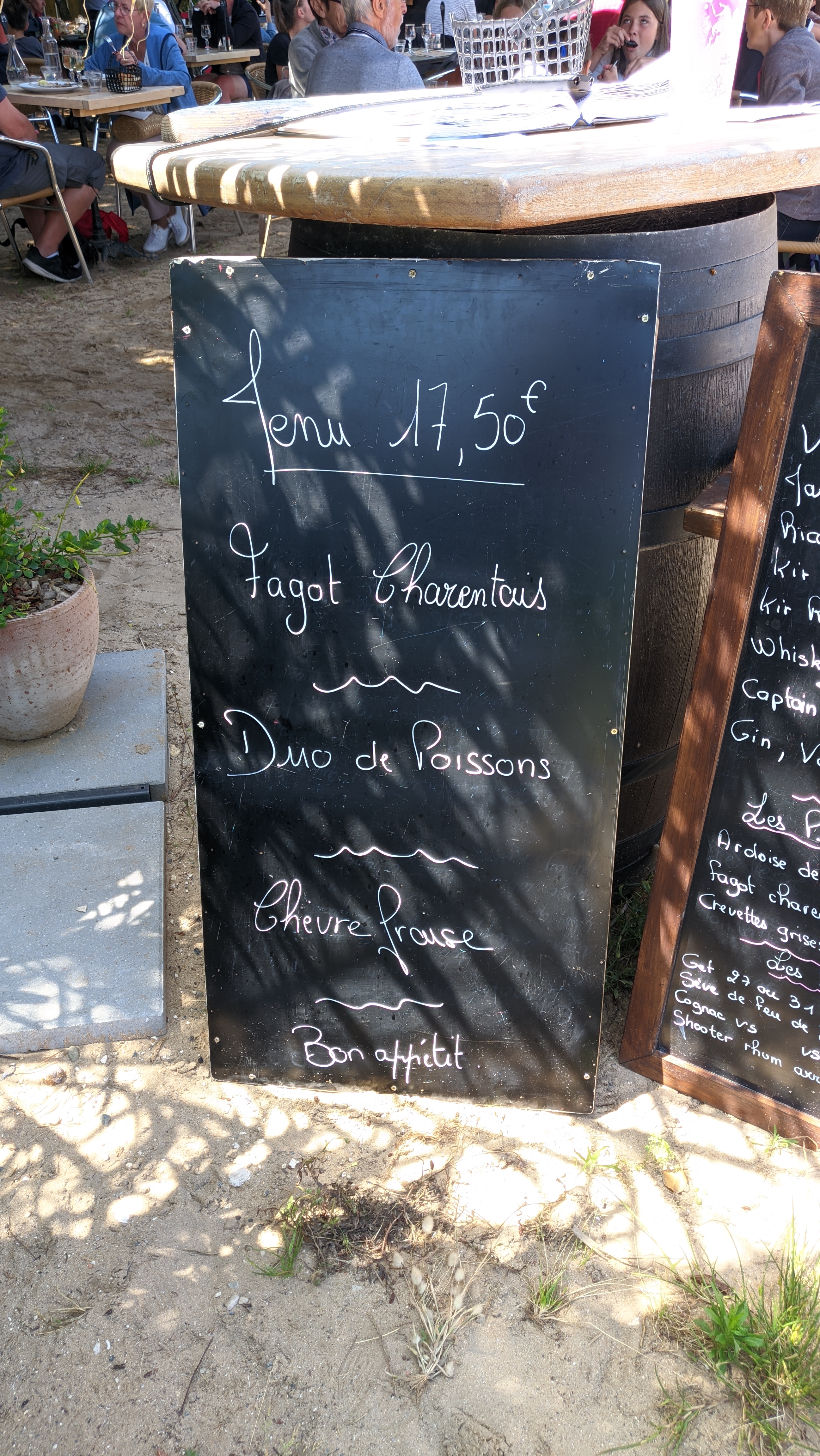 Dommage... dommage.... le staff très sympa.. mais cela ne fait pas votre assiette.. très peu de nourriture pour la qualité donc cela devrait être copieux....mais non... brochette de boeuf très froide en arrivant à table. Quasiment plus rien de disponible sur la carte (14h) plus de moule plus de raie plus de lotte que du boeuf sur l'île d'aix...... par contre le chèvre au fraises en dessert est excellent !