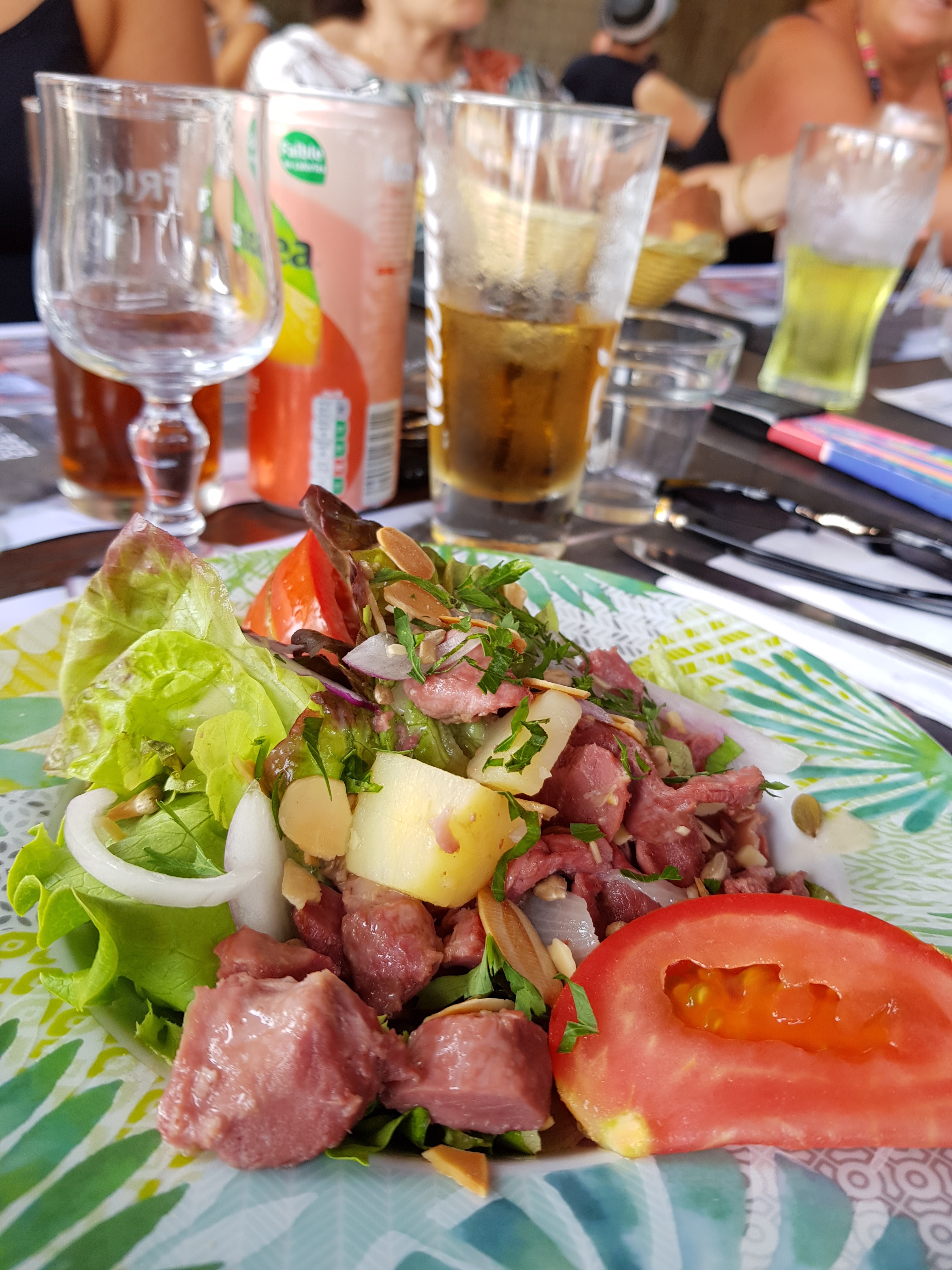 Nous étions venus il y a plus d un an et avions passé un très bon moment, nous y sommes retournés hier et avons eu l impression de tomber dans une usine à restauration. Accueil froid et brusque, menu sans grand intérêt, salade certes généreuses mais sans originalité, plutôt le sentiment d un fourre-tout (j ai trouvé une pomme de terre sautée dans la mienne qui n avait rien à faire là....)dommage .