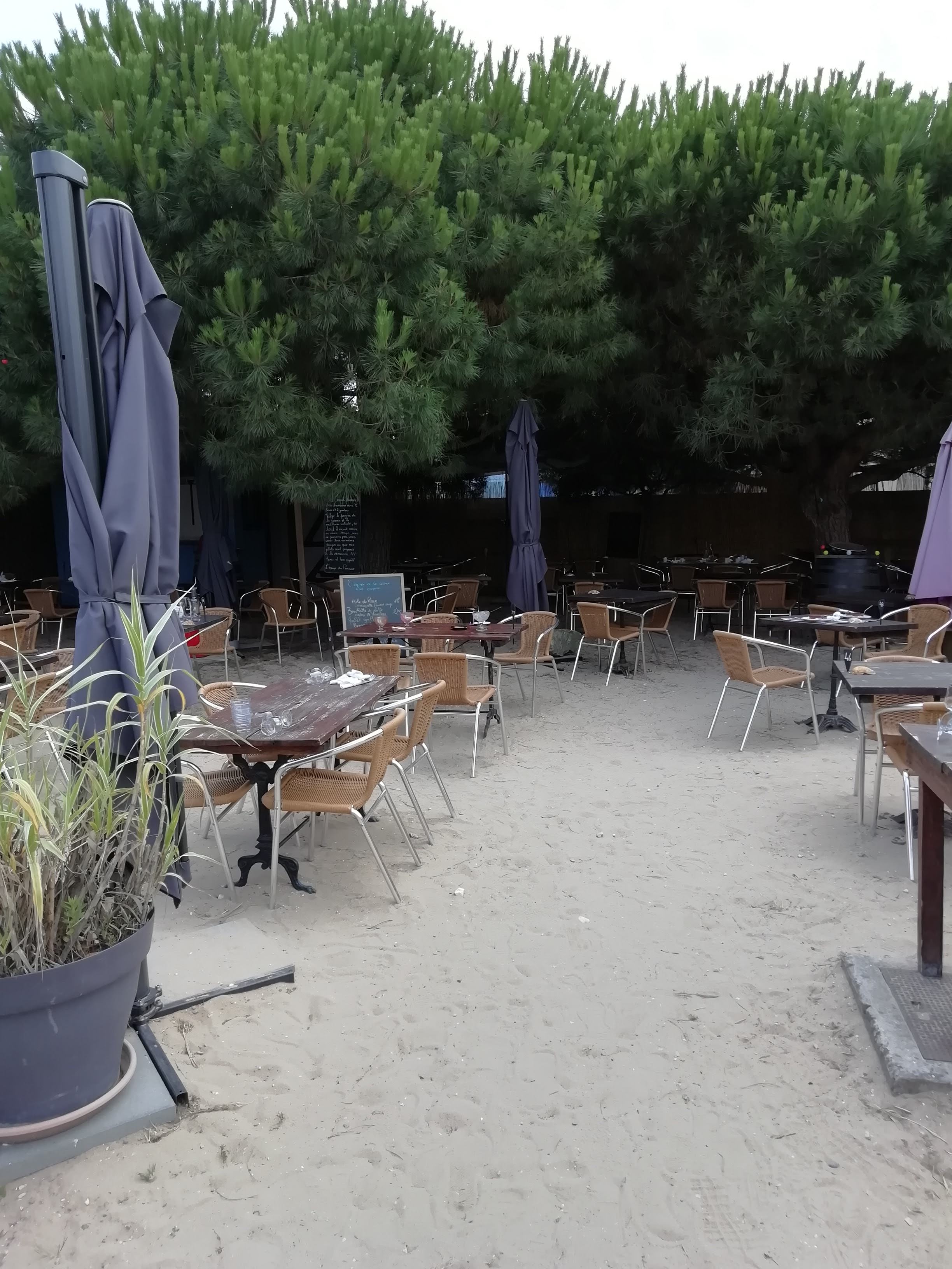 Petit restaurant très ombragé sous les pins, les pieds sur le sable, équipe sympathique et active. Peu d'attente, moules marinières excellentes. Il est toutefois préférable de réserver, surtout si c'est en haute saison.