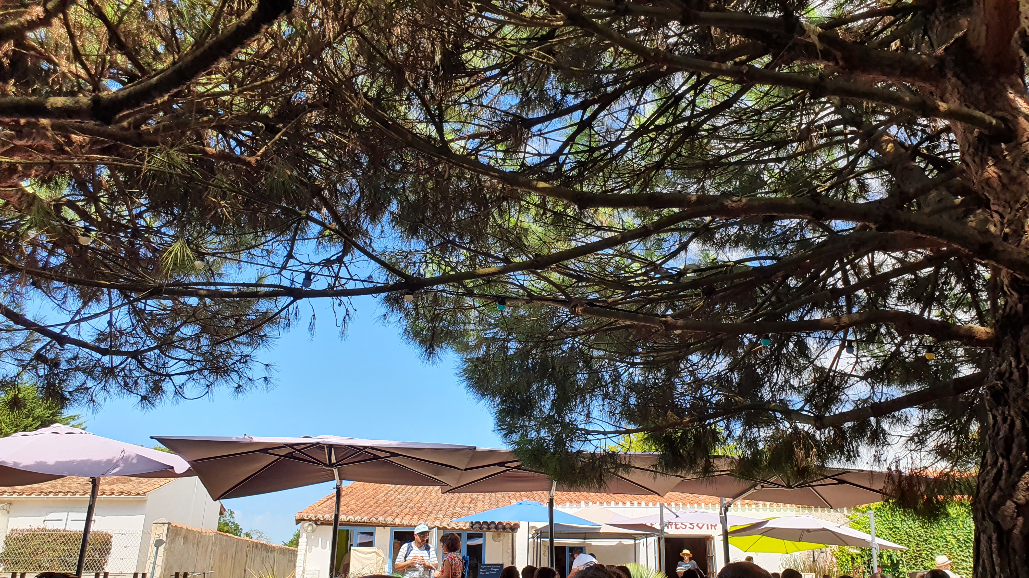 Lieu agréable avec une très grande terrasse ombragée. En dehors du bourg à un quart d'heure à pied du port d'Aix... Service agréable cuisine simple... À 200m de la plage