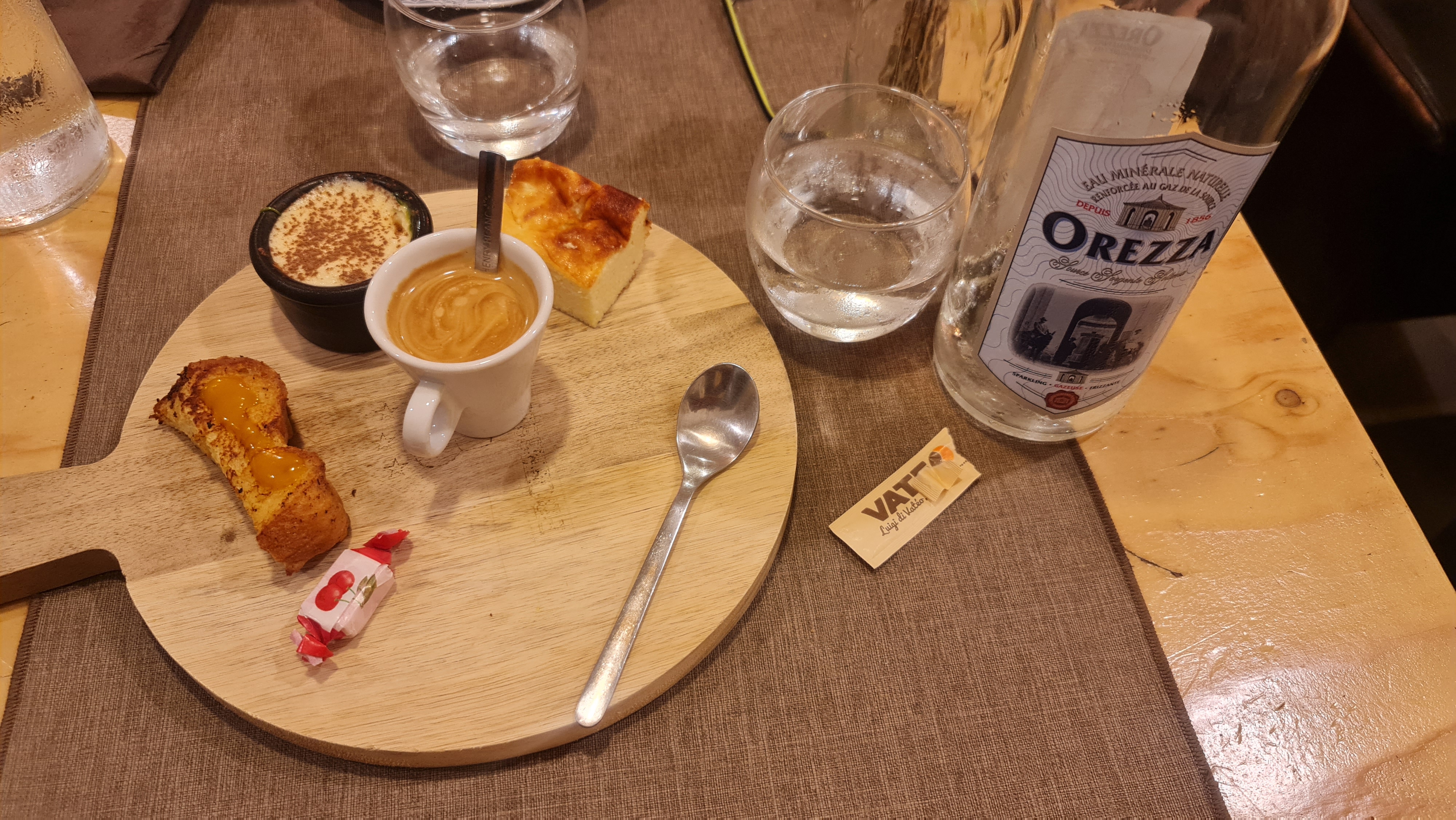 Petit restaurant bien décoré et fort sympathique. Les tarifs sont très abordables et les portions généreuses. Beaucoup de produit de Corse. Mention spéciale à la brioche perdue au caramel beurre salé qui était délicieuse. Je recommande grandement ce lieu aussi bien en couple, entre ami, qu'en famille.