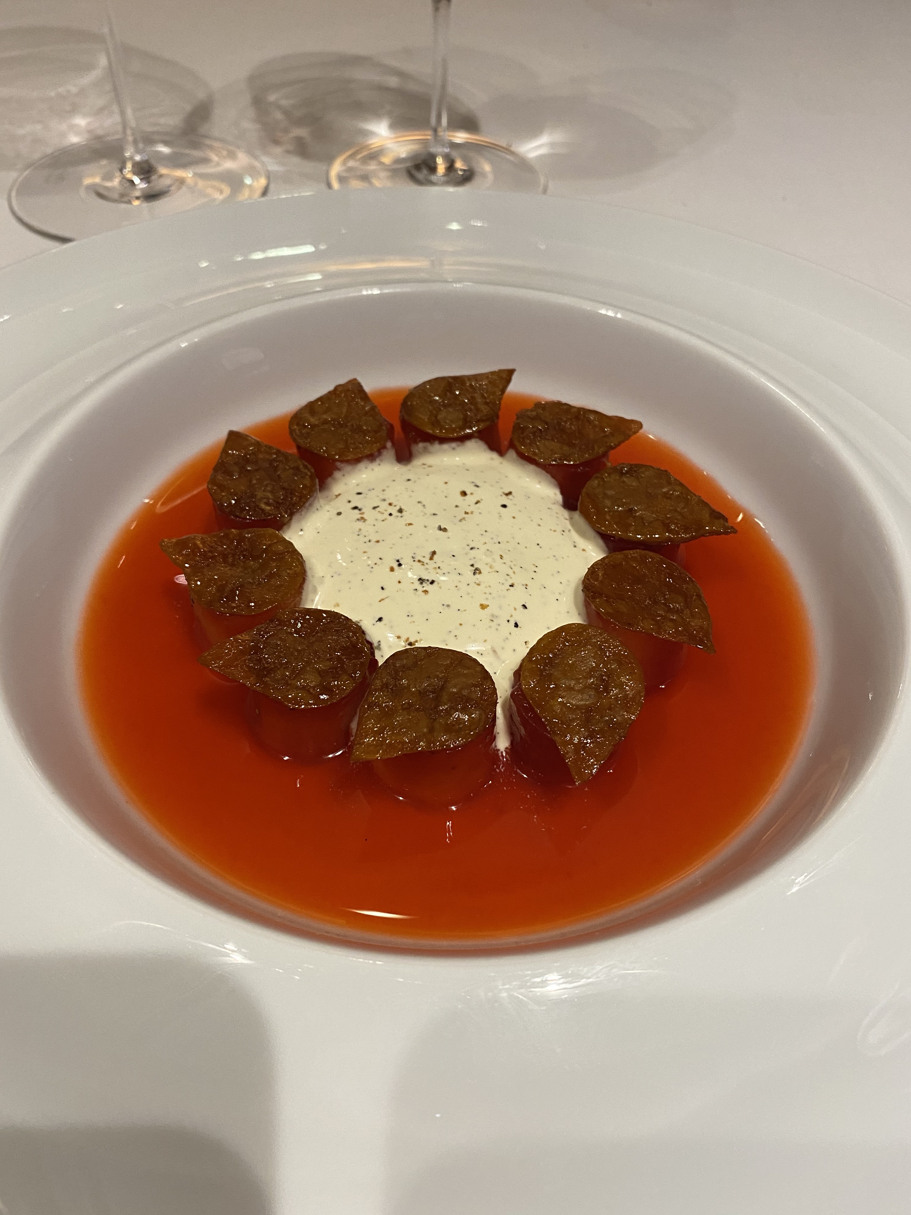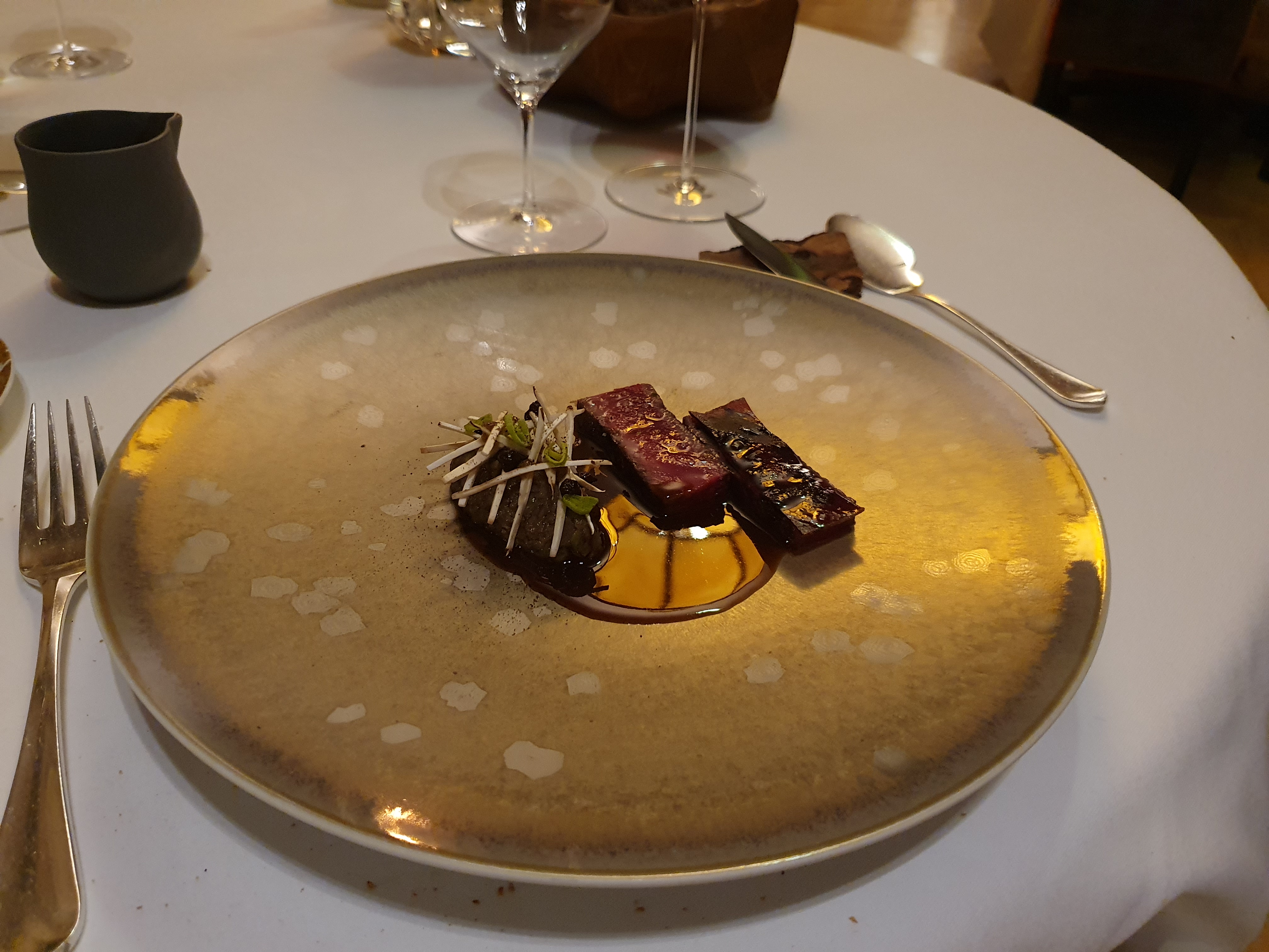 Un moment unique, aussi merveilleux dans l'assiette que chaleureux et professionnel en salle. Tous les plats viennent vous charmer : justesse des cuissons, des saveurs qui se donnent la main, des textures qui apportent le relief nécessaire, une acidité suffisamment présente pour laisser chaque papille en éveil. Et un service remarquable qui vous donne l'impression d'être chez vous, tout en étant d'un très grand professionnalisme. Des vins étonnants, que l'on ne connaît pas tous et dont on découvre la grande richesse. Tout simplement bravo au chef et à tous ceux qui l'entourent pour ce grand moment