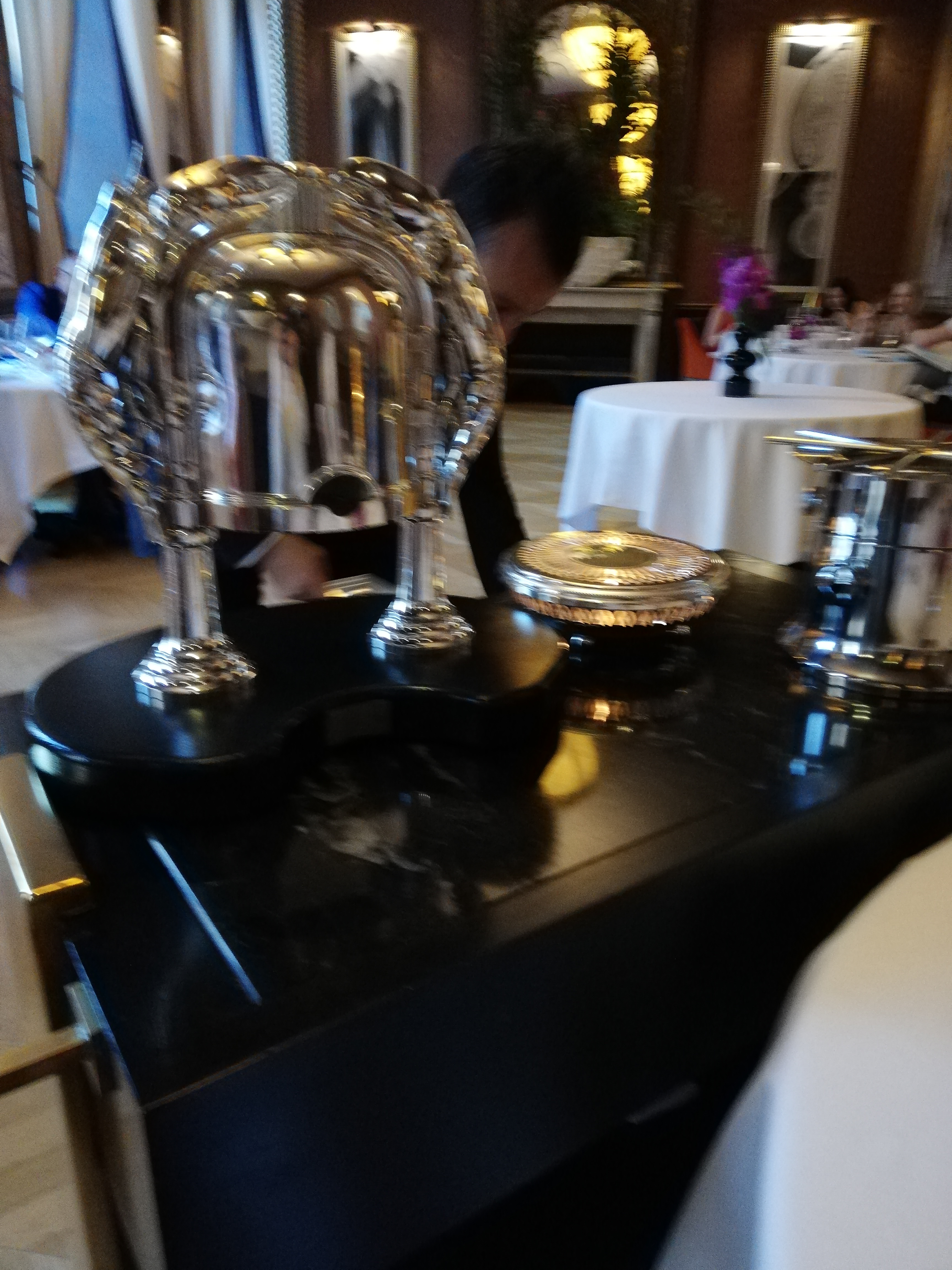 Si le décor est luxueux , on peut aussi dire que le choix florale sur les côtés donnait un côté mortuaire au décor. Pour le menu dégustation, une déception, trop de goût fumé ne permet pas d apprecier les produits de qualité sélectionnés. Note positive sur le café excellent qui au prix aurait pu être accompagné de quelques mignardises. Le service est quand à lui parfait. En résumé, un étoilé qui ne nous a pas emballé. Mais les goûts et les couleurs...