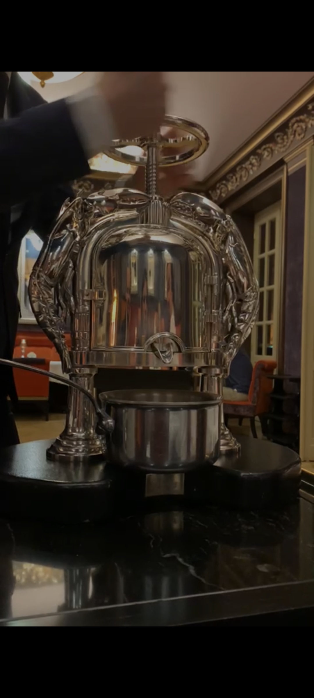 Excellent restaurant. Très beau cadre. Pressoir en argent unique en son genre pour presser les carcasses de homard. Prix en consequence