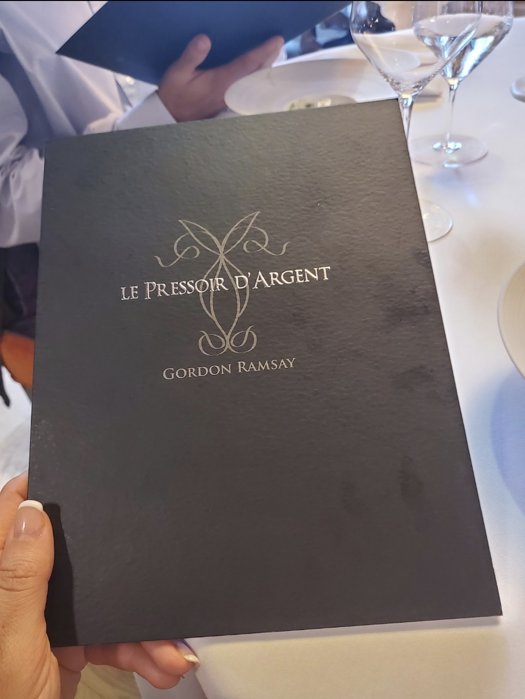Nous avons passé un très bon moment au Pressoir d'Argent entre amis en profitant d'un excellent dîner. La qualité était présente dans chaque plat et chaque entre-mets. Le service était également très professionnel et certain serveurs, même très sympathiques. Cela dit, même si j'ai vraiment très bien mangé, je n'ai pas eu d'étoiles dans les yeux. Bien que les plats fussent délicieux, je n'ai pas eu de surprises en termes de saveurs, une sorte de zone de confort ou absence de prise du risque du chef à mon avis. Niveau prix, je sais que c'est un deux étoiles Michelin, mais j'ai trouvé le restaurant très cher. Un menu cinq plats sortant à 185 EUR, un accord mets-vin à 110 EUR (ou 190 EUR si l'on opte pour une version plus premium), c'est trop élevé à mon goût. Les choix à la carte au lieu du menu était aussi un peu limité (je vais attribuer cela au COVID). Les vins au verre 70 EUR pour un bon rouge ou 140 EUR pour un Château d'Yquem. Les sommelier mettait plus en avant le type de vin ou le producteur que les arômes et comment ils mettaient en valeur les plats. Quelques bémols donc qui m'empêchent de mettre cinq étoiles, même si dans l'ensemble tout était excellent. Après Gordon Ramsay devrait ôter son nom alors qu'il n'est pas présent. Il faudrait plutôt mettre avant le vrai chef de cuisine...
