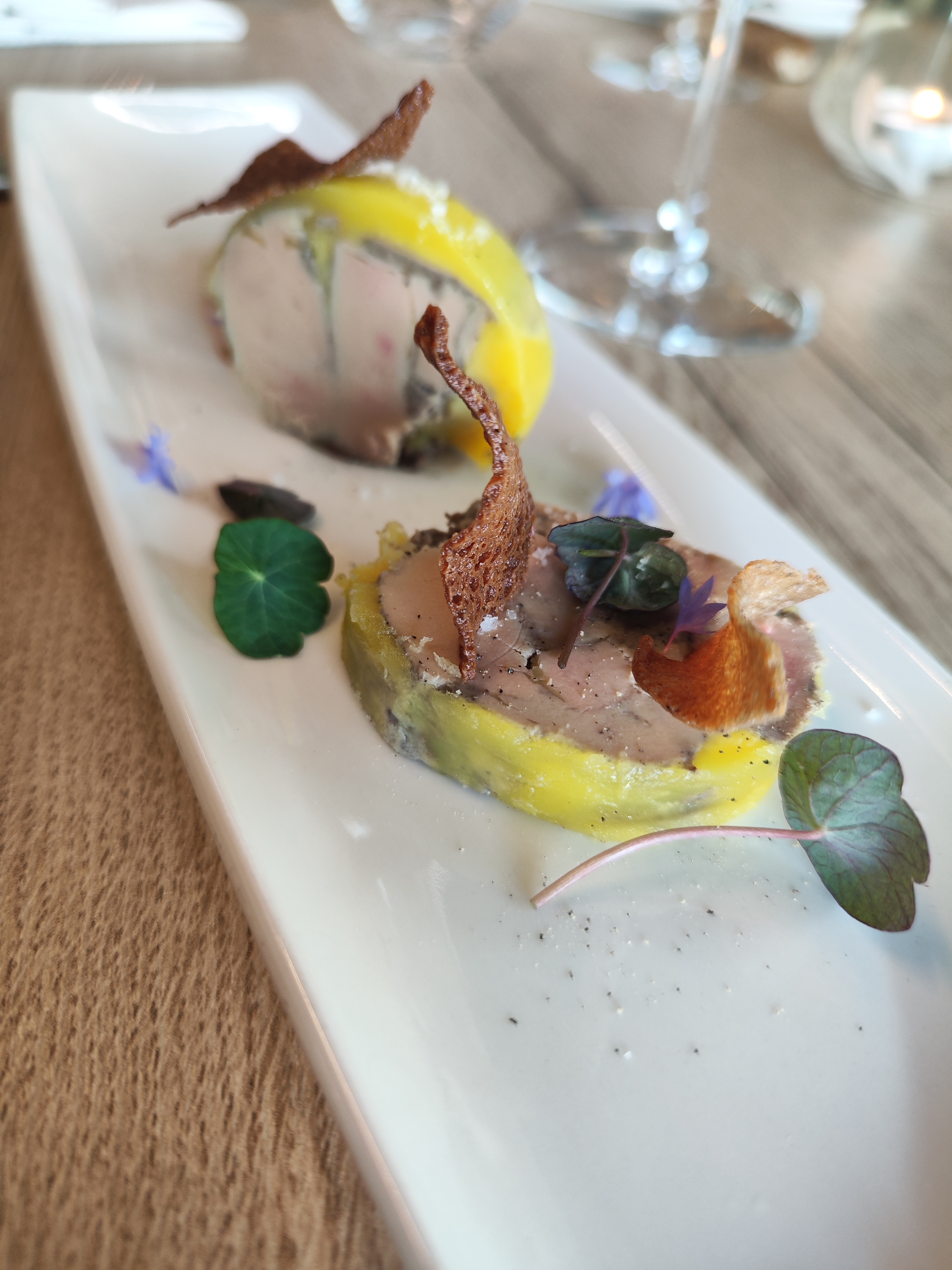 Bonjour, on avait réservé une table de 9personne ( le 22.02.2024) dans ce bel établissement où on se sent tout de suite bien. Ont avait commedee chaque un le menu sur carte. Moi fois gras , cabillaud et gâteau au chocolat. J'ai beaucoup tout les 3 plats mais le gâteau au chocolat avec sa crème fumé c'était vraiment une délice. Je vous recommande bravement ce restaurant pour ces assiettes raffinée avec des saveurs incroyable.