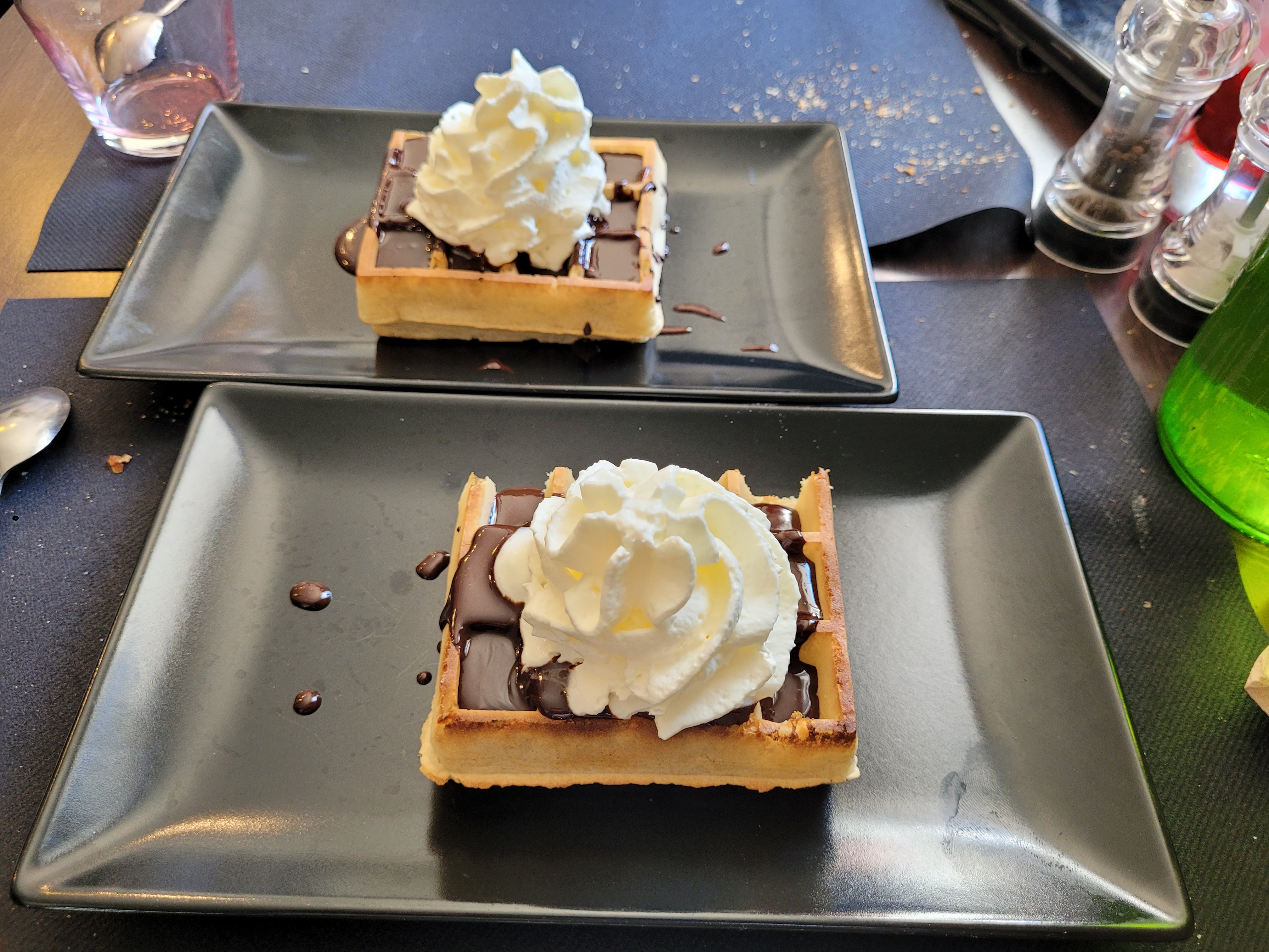 Par un beau temps , nous sommes allé au Prieuré et c'était très bon. Je recommande sans hésiter l'entrecôte avec la sauce champignon une tuerie. La preuve je n'ai pas eu le temps de prendre une photo 😂. Le dessert extra une gaufres moelleuse et croustillante en même temps 😋😋