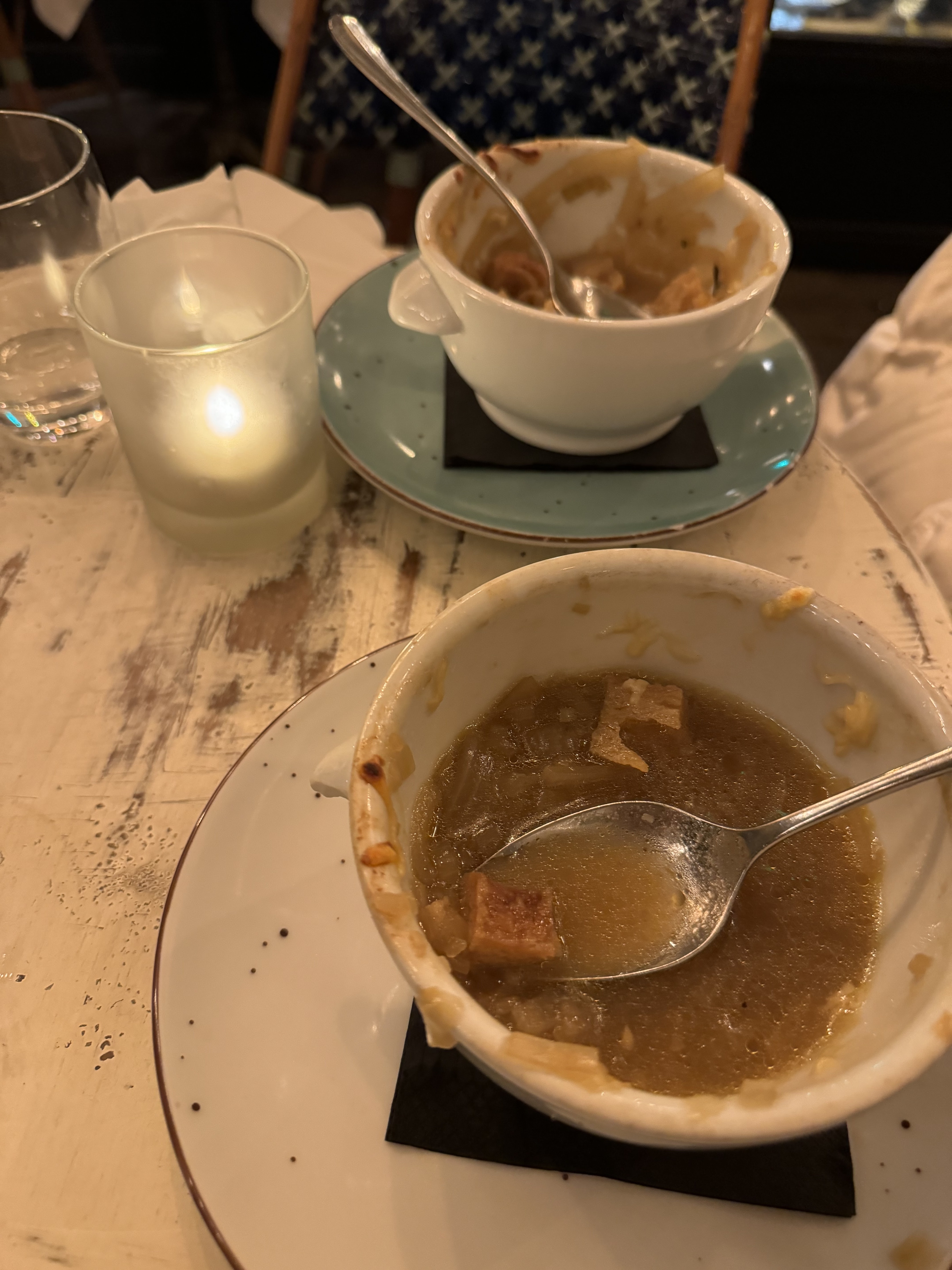 Nous sommes venus ici pour un déjeuner rapide lors de notre dernier jour à Paris avant de nous diriger vers l'aéroport (car ils servaient le déjeuner à partir de 11 heures). Nous avons eu leur bœuf bourguignon et leur steak (?). Le bœuf bourguignon était absolument délicieux ! Super costaud et satisfaisant. Le steak avait une excellente croûte, mais c'était un peu sec. La sauce a aidé. Nous avons également eu leur soupe à l'oignon qui était délicieuse. Le service était également très rapide, ce que nous avons apprécié.