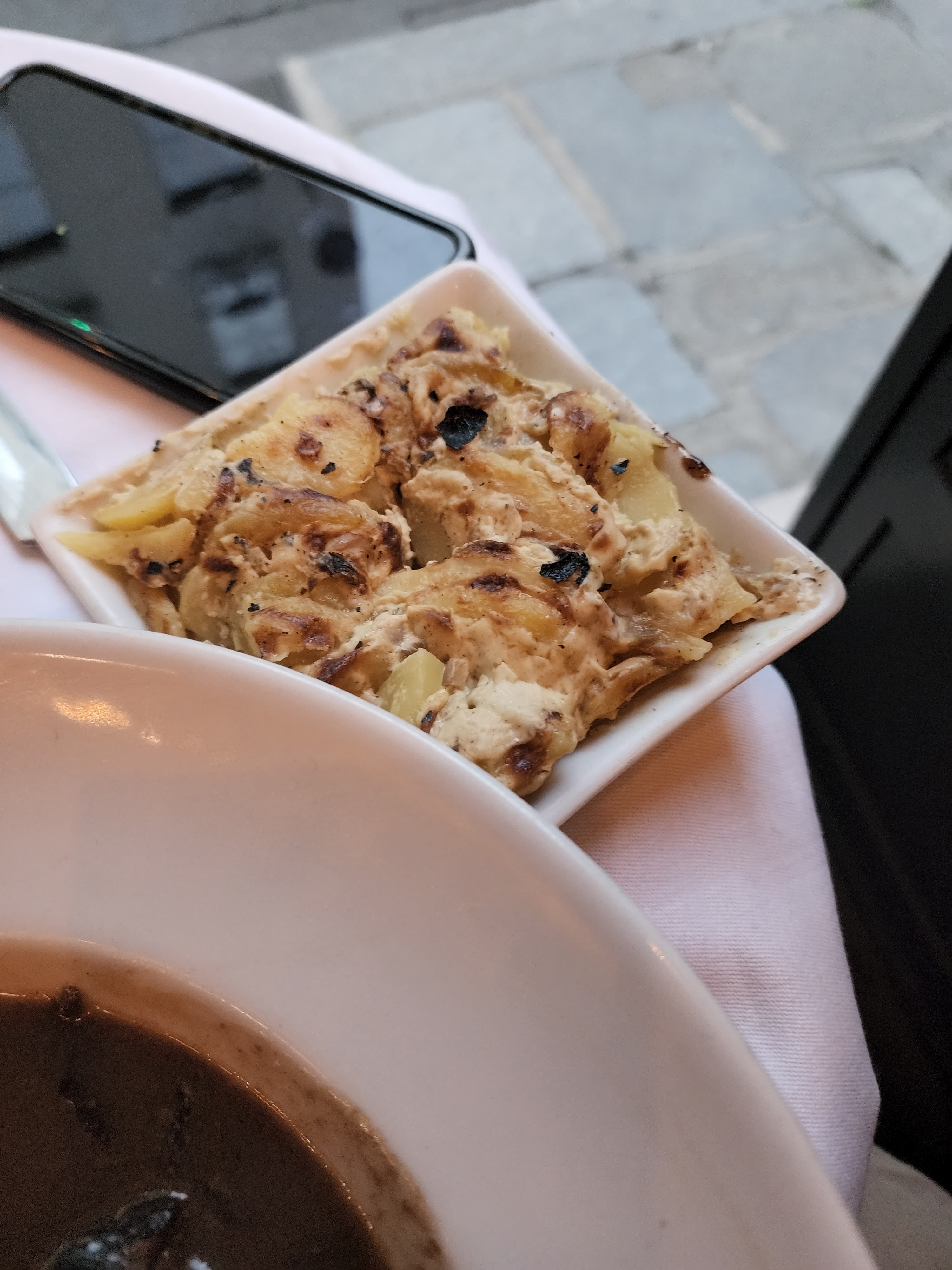 Nourriture délicieuse, bonne ambiance et ne semble pas touristique, mais ils proposent un menu en anglais, ce qui est utile. Le gratin de pommes de terre aux truffes était incroyable !