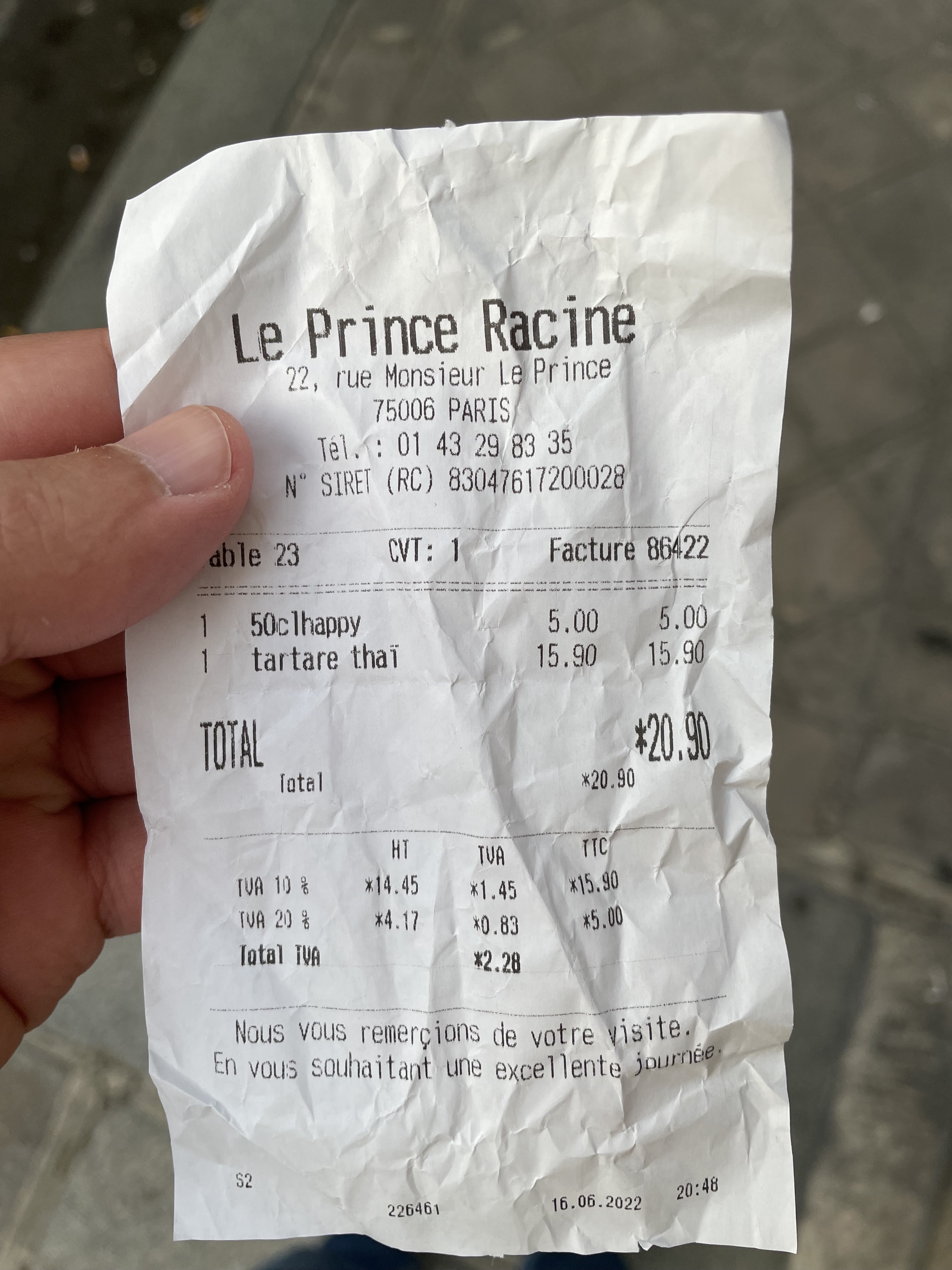 Voici une belle adresse qui vient de réouvrir après le confinement COVID. Un accueil chaleureux et des plats à la carte presque tous disponible. Mais l’ardoise du jour nous invitait à déguster un tartare thaï ou un ceviche idéal pour ce temps printanier. Le Prince Racine est à deux pas du Jardin Du Luxembourg