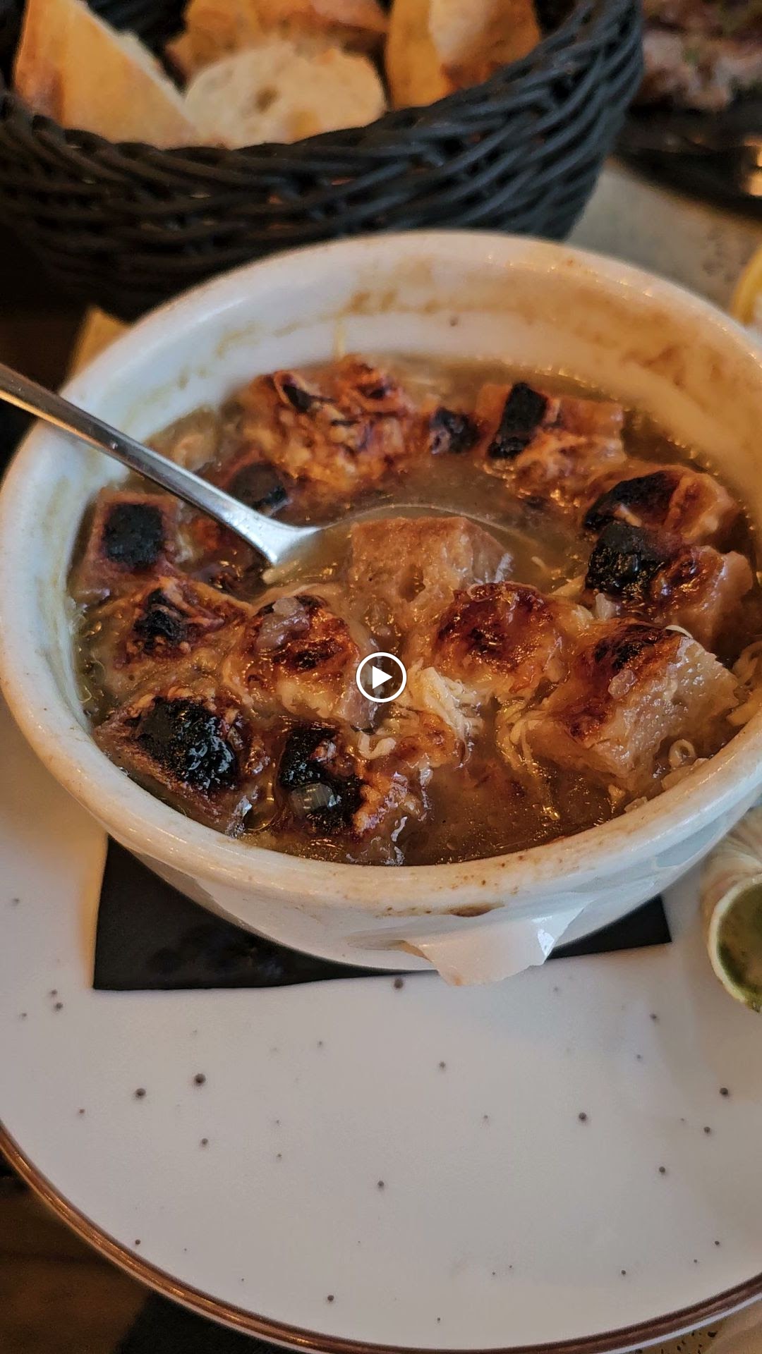 La soupe au risotto et à l'oignon était très bonne. Les frites étaient juste ok. En général, bon service, restaurant décent.