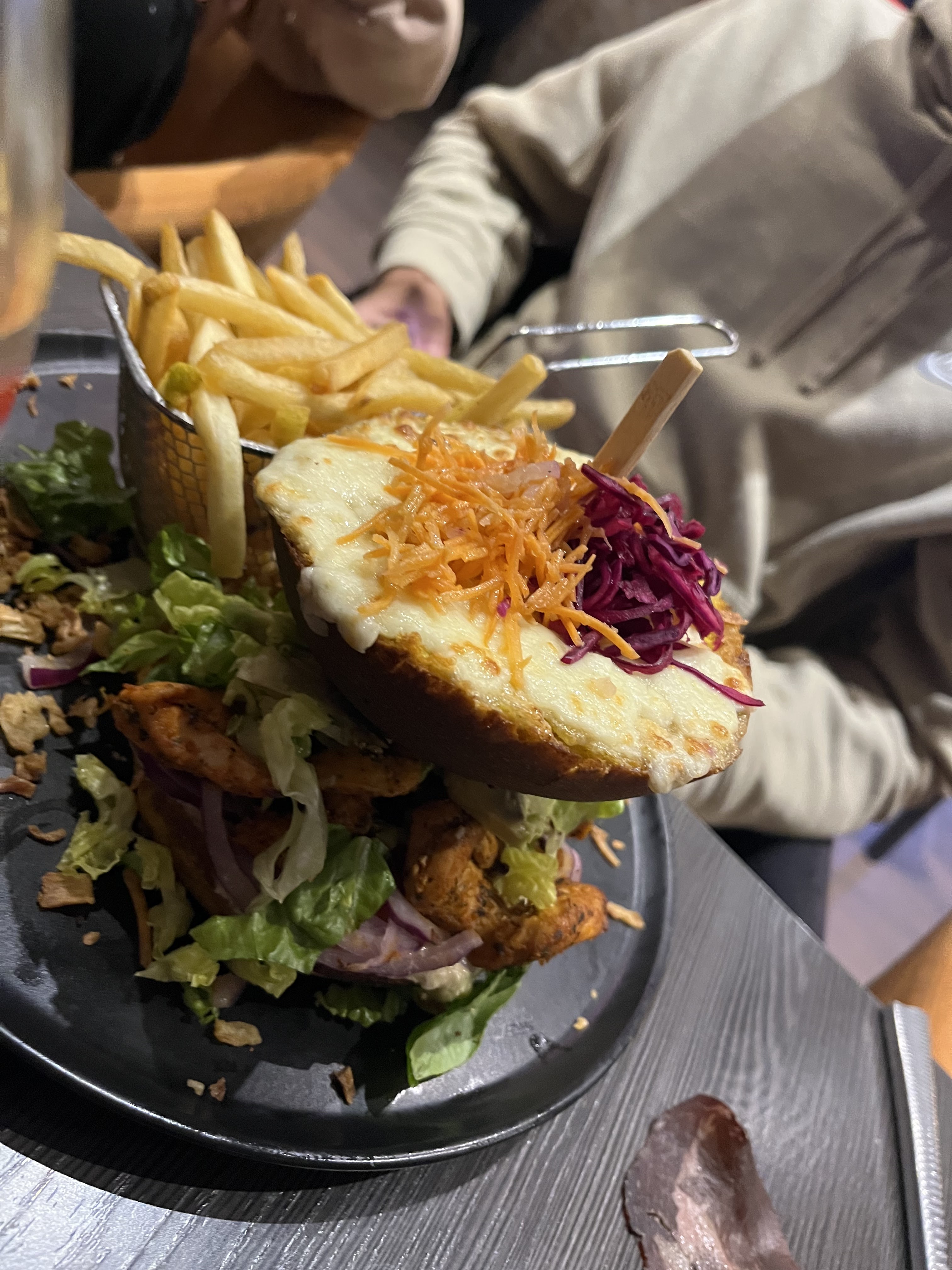 Très beau restaurant, personnel à l'écoute et sympathique cependant les plats sont trop cher pour ce que c'est tout n'est pas fait maison. Les plats manque d'épices et de goût par ailleurs il y a de bonnes choses comme le pain burger très bon mais le tout trop sec. Il y a du progrès à faire mais beau concept et sur Poissy ça change un peu. Il faudrait soit revoir les prix à la baisse ou améliorer les plats !
