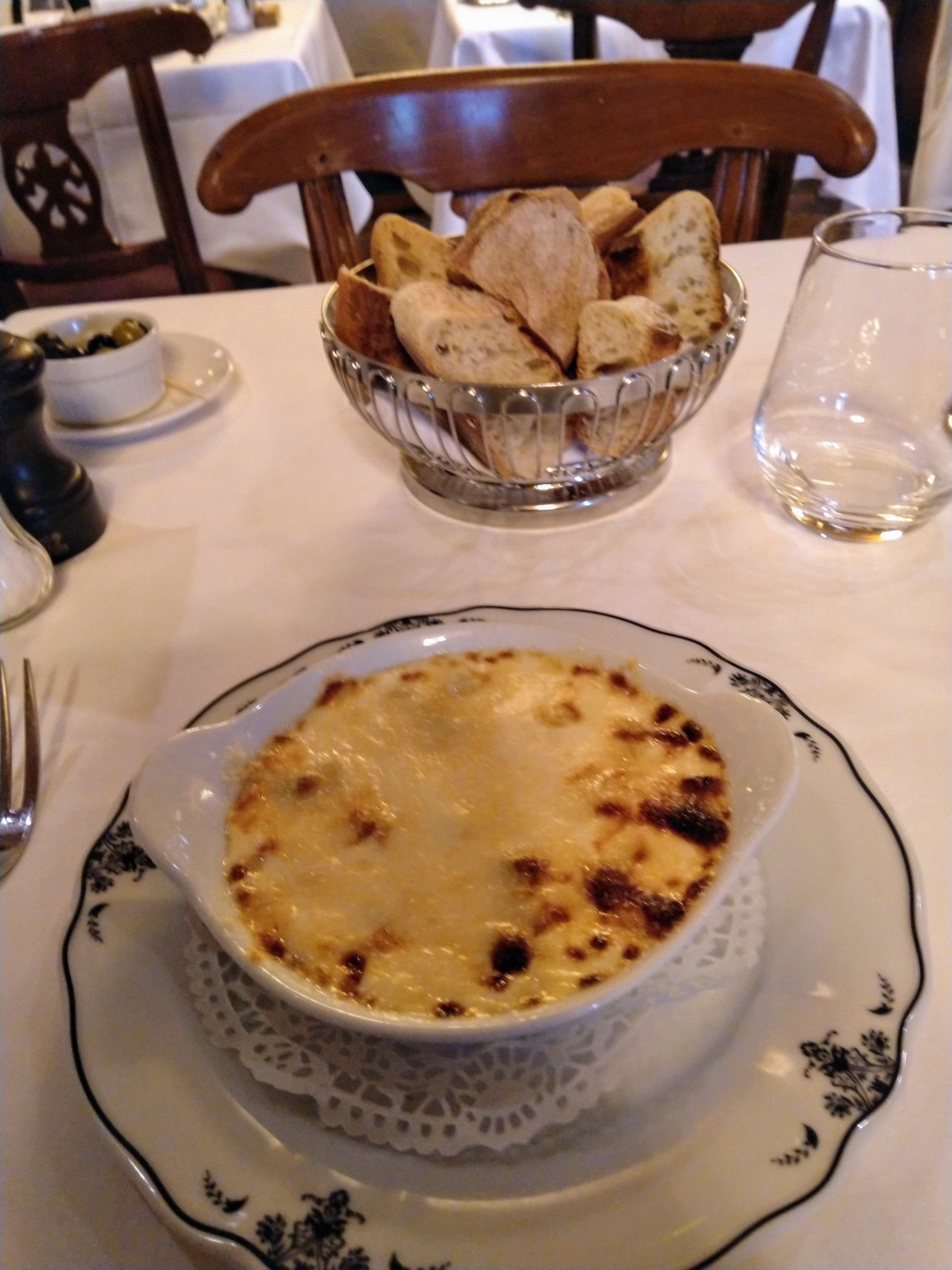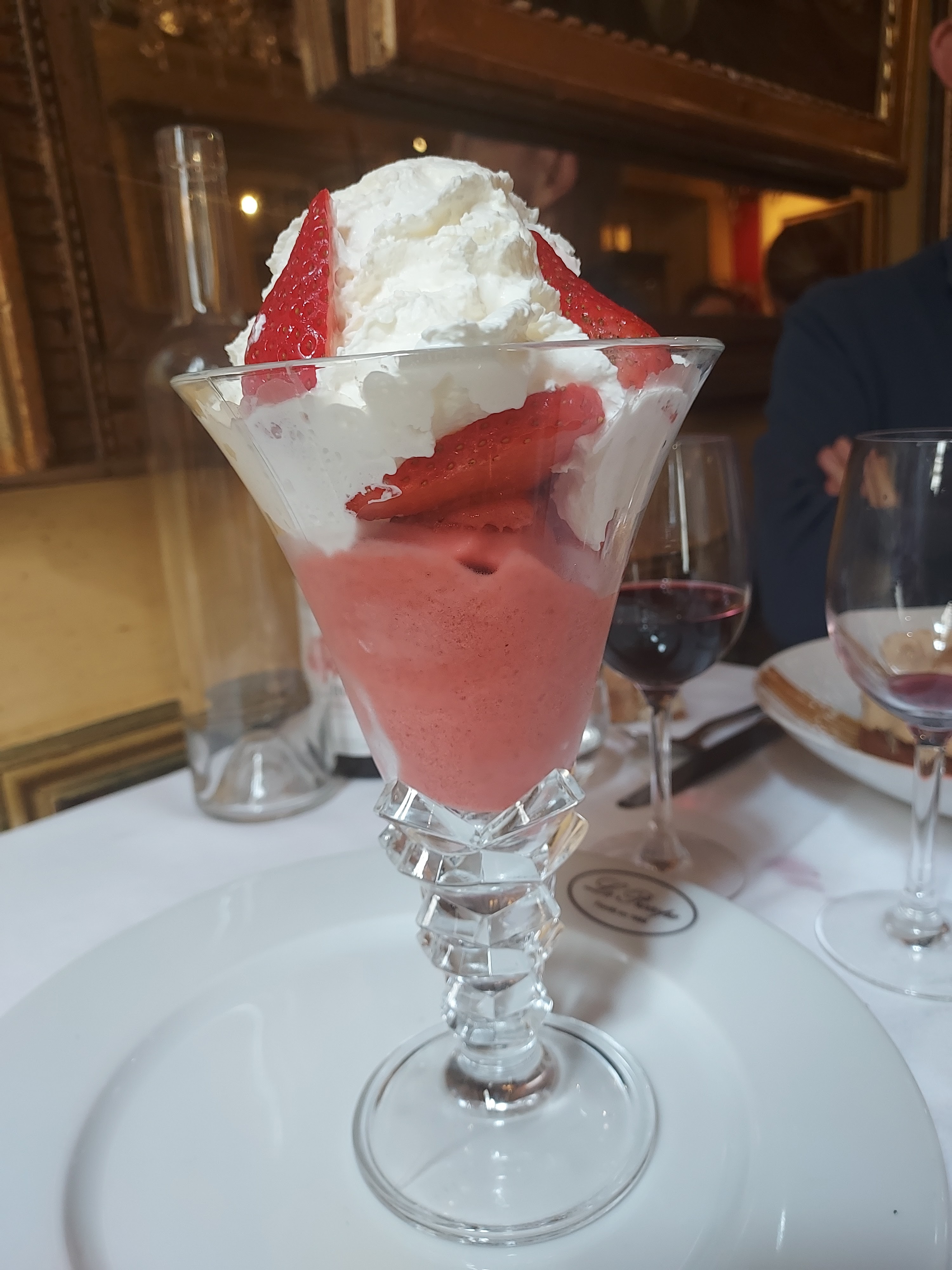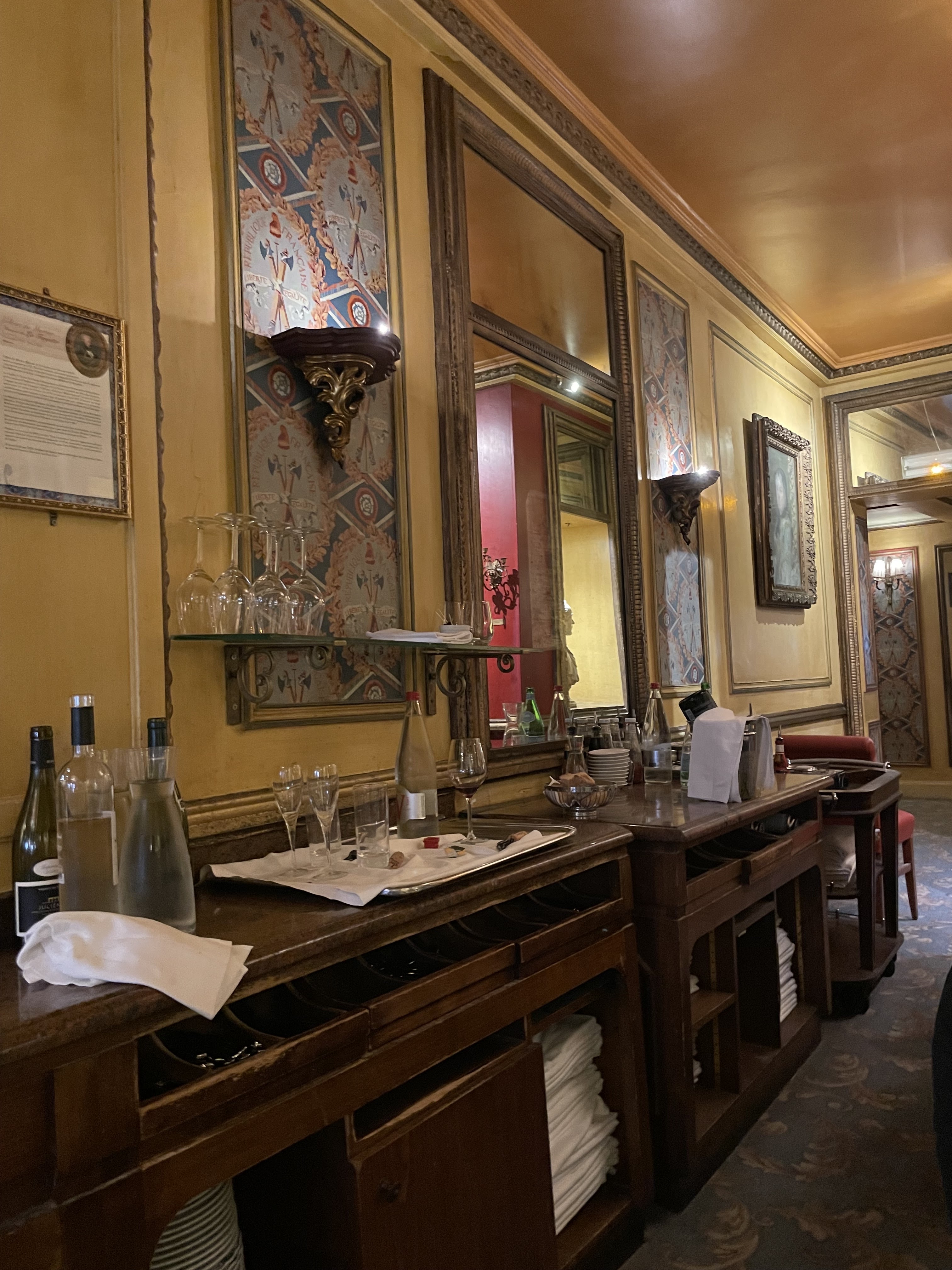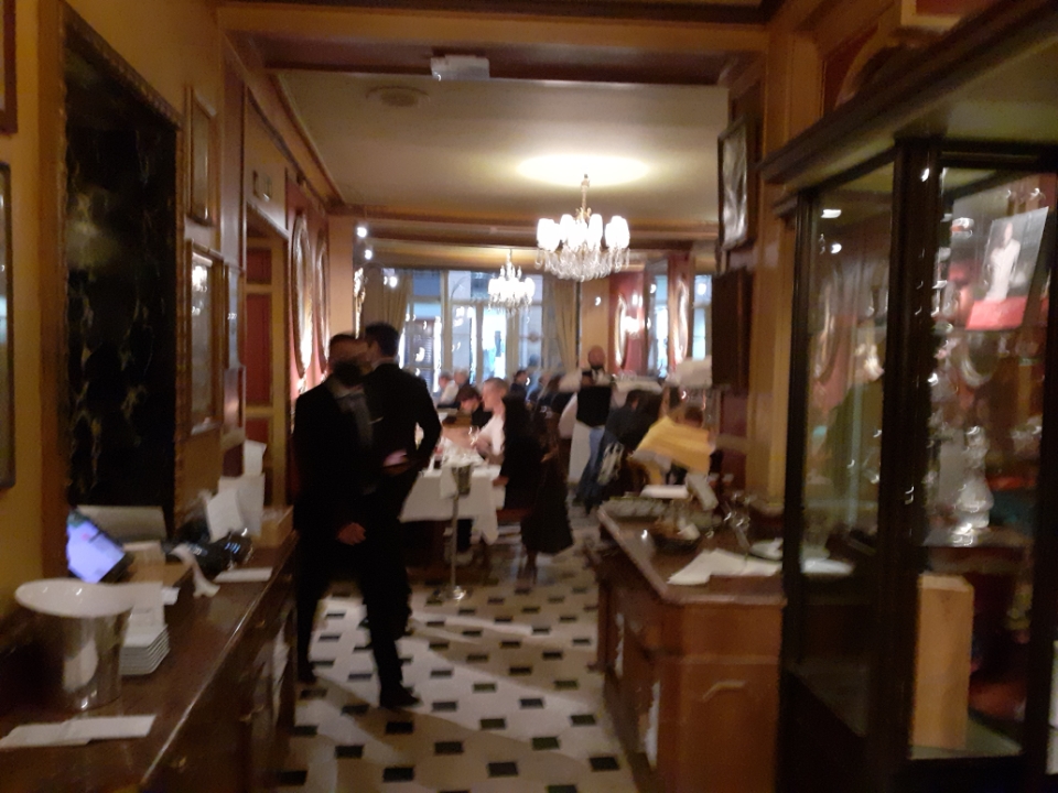 Points positifs : le lieu extraordinaire avec déco incroyable, le bicorne de Napoléon par exemple! Nous avons passé un bon moment. La cuisine est très correcte malgré quelques couacs de présentation (voir photo du risotto). Points à améliorer : il n’y a pas de sommelier?!? Le service est vraiment approximatif. Il semble que le pain ne soit fourni qu’après que les plats arrivent alors que dans les autres restaurants c’est toujours tout de suite après avoir passé commande. J’ai du me lever pour aller en chercher et aussi pour demander la bouteille de vin commandée. Le maître d’hôtel qui nous dit travailler ici depuis 6 ans dans un français avec un fort accent indien difficile à comprendre est incapable de nous conseiller une bouteille de vin. Au dessert je demande un supplément crème fouettée maison pour la goûter: cela fait tout un pataquès avec le maître d’hôtel et la serveuse qui parlementent pendant 10 minutes en disant que ce n’est pas dans la recette commandée… incompréhensible… j’ai insisté en disant que j’allais payer pour le supplément si nécessaire. Dans d’autres restaurants parisien il n’y a absolument aucun problème pour ce type de demande.
