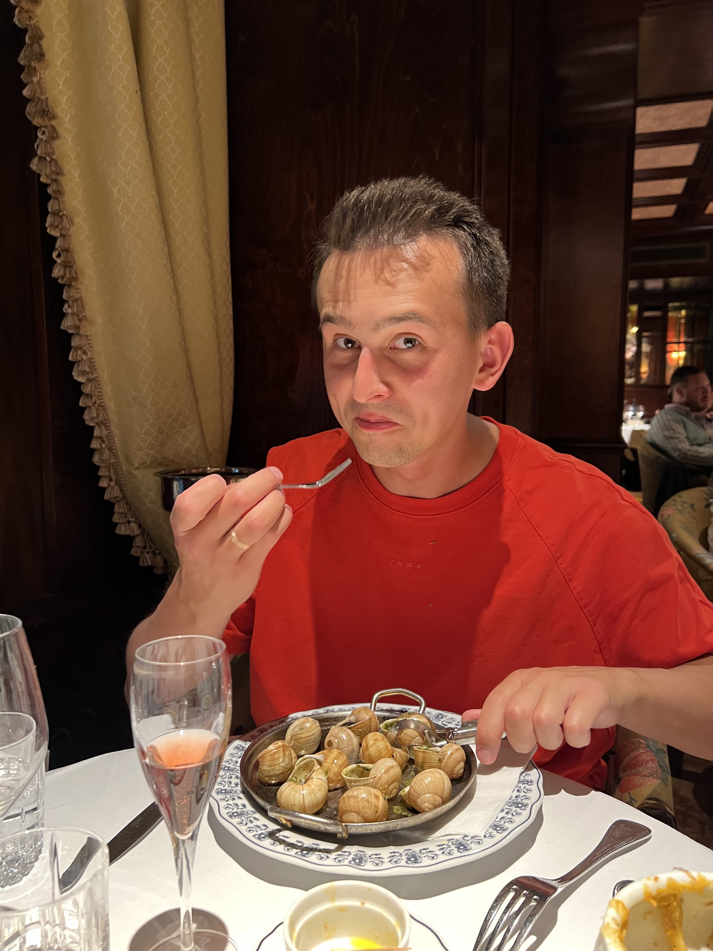 Un restaurant merveilleux, vous vous sentez dans un milieu de luxe. Comme entrée, j’ai goûté les escargots : bien faits, très bon. Mon plat principal était absurdement délicieux, sans doute l’un des meilleurs plats de toute ma vie. Cependant, comme dessert j’ai pris une Baba au Rhum qui n’était pas du tout agréable, c’est pourquoi je mets 4 étoiles et pas 5. Elle était imbibée dans le rhum et je ne sentais rien que le rhum, j’ai pas réussi à la finir. À part ça, espace divin et service impeccable.