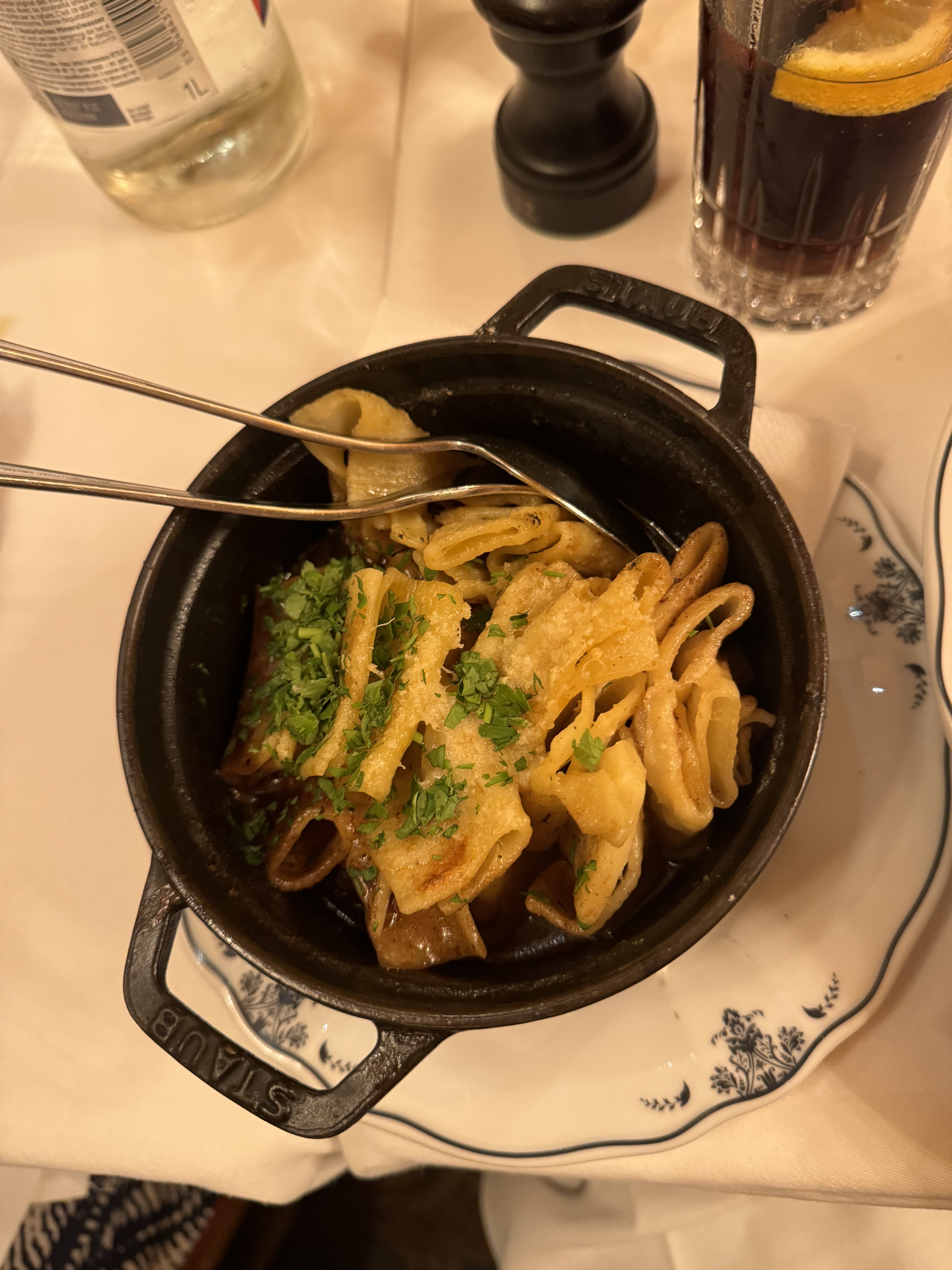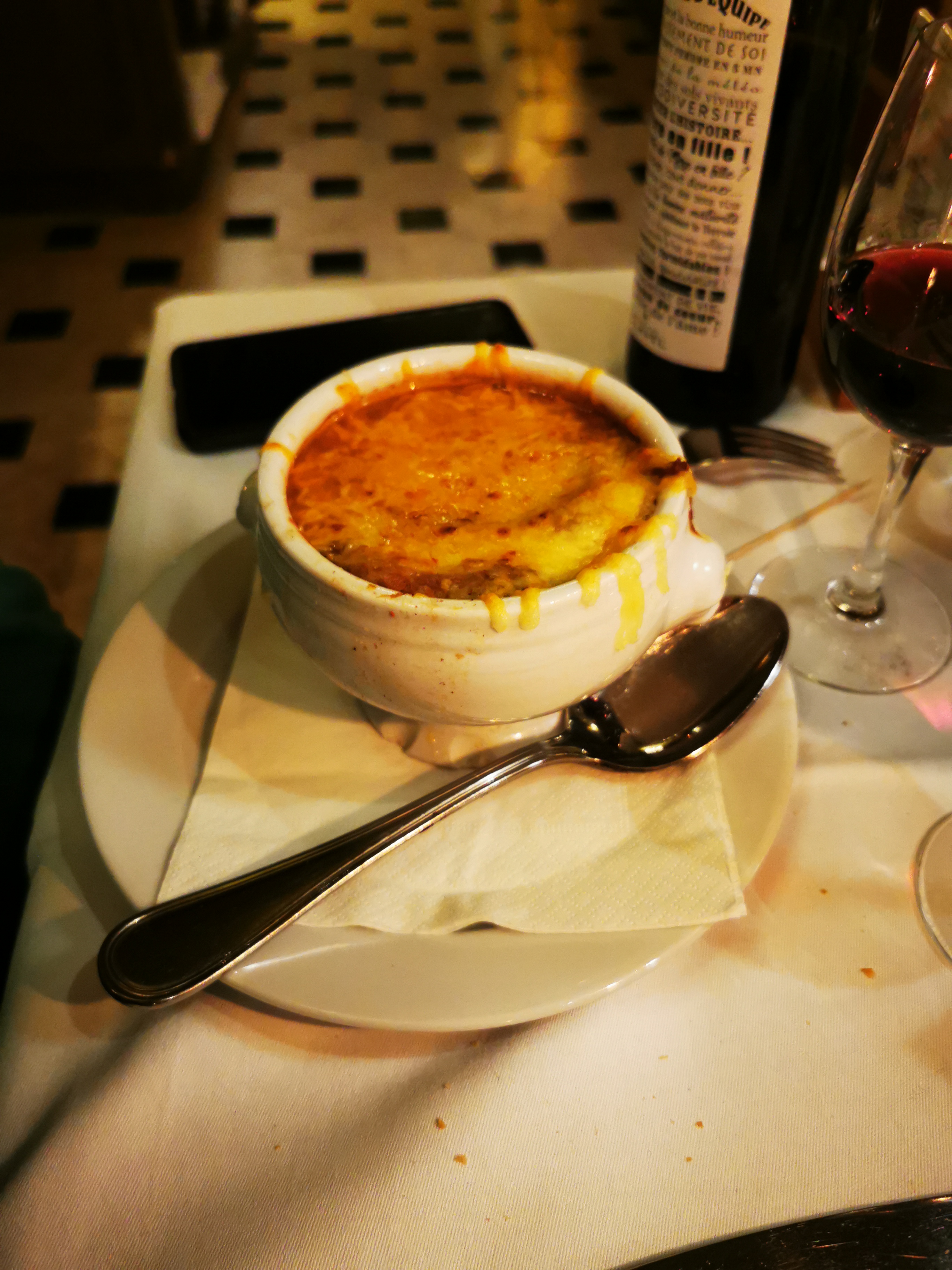 Merci à Luigi pour le service et à la cuisine pour la cuisine délicieuse ! C'était merveilleux. Superbe soupe à l'oignon et aux escargots, ainsi qu'une incroyable crème brûlée. Le vin recommandé était également délicieux. A boire, acidulé, légèrement minéralisé, bien que rouge ! Un super café avec beaucoup d'histoire !