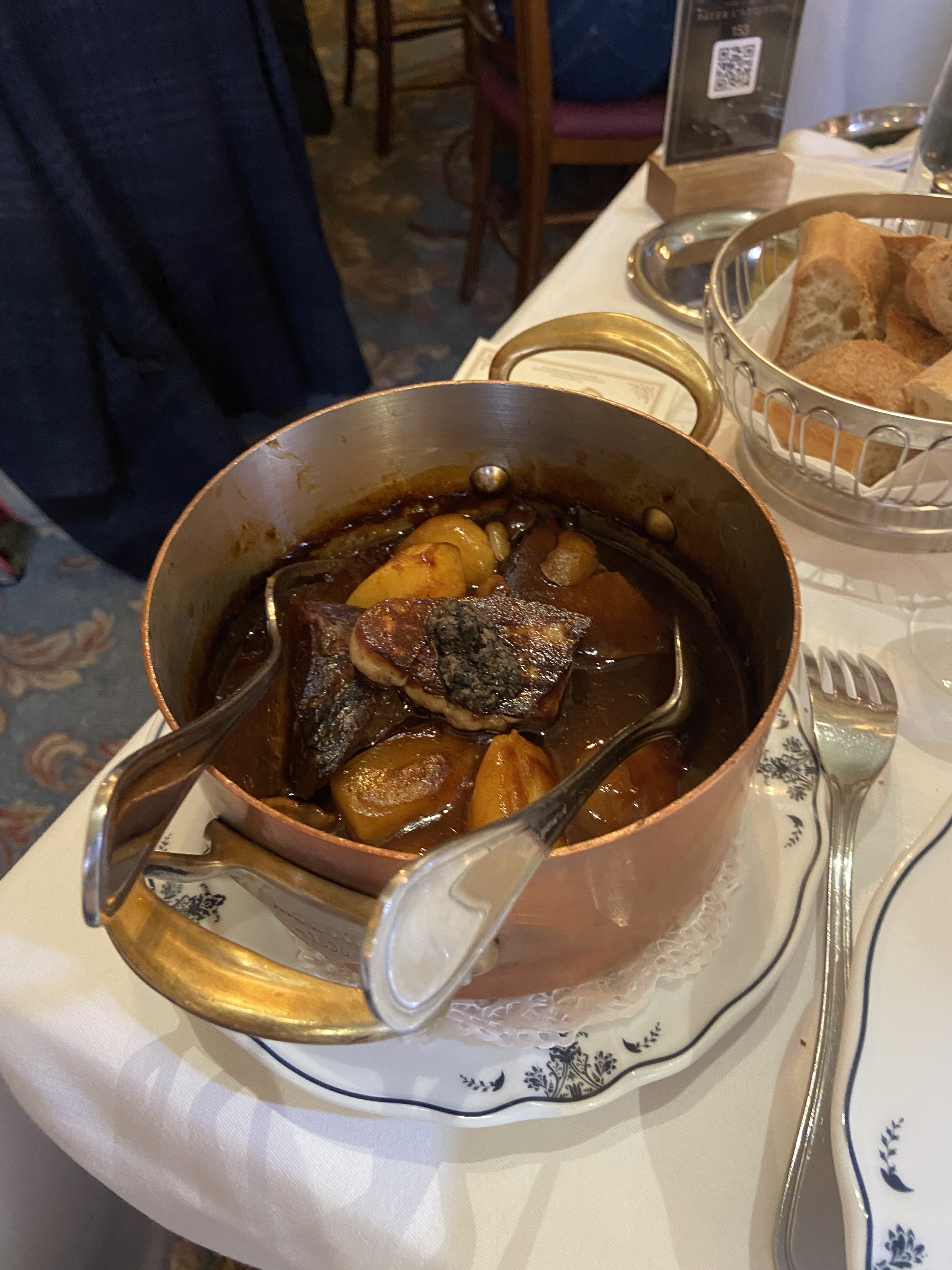 Parfait si vous souhaitez déguster une cuisine traditionnelle dans un cadre historique. Le paleron de bœuf était fondant et goûteux à souhait , un délice. Les papilles s’en languissent déjà. Les desserts étaient tout aussi savoureux. Service impeccable et sans chichi. Prix parisiens mais vous pouvez trouver plus cher et moins bon ailleurs. Mieux vaut réserver.