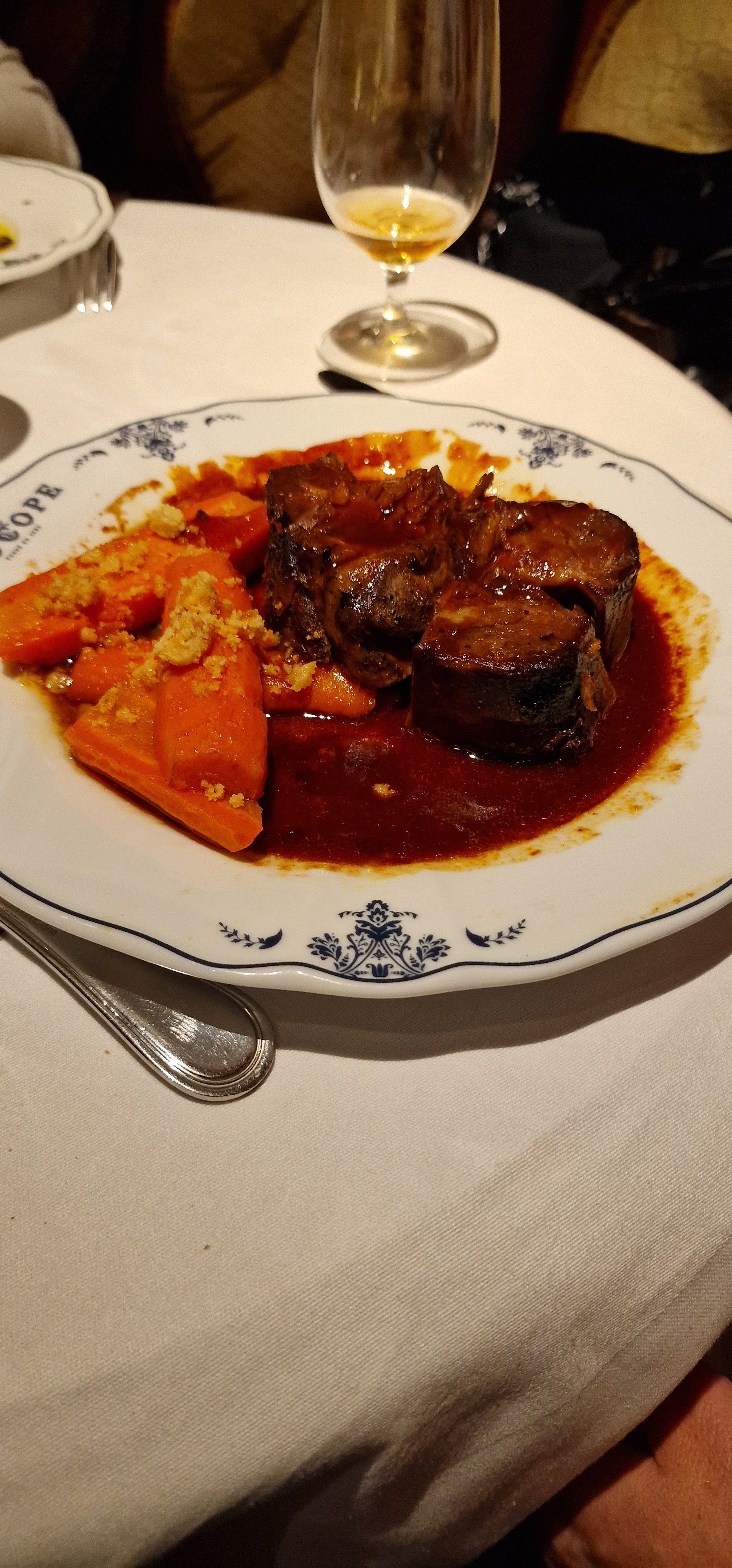 Une bien belle baisse de niveau entre 2022 et aujourd’hui. Habitué du lieu, j’ai pu voir la qualité des plats servis ainsi que le service se détériorer. Certes la vaisselle et les menus reliés cuir rajoute encore au caractère singulier du lieu ô combien unique. Mais il est à déplorer que c’est au déficit de ce qui est proposé dans l’assiette et du service. Cela l’est d’autant plus que c’est difficilement justifiable avec des prix qui ont augmentés, un menu philosophe moins intéressants et des vins proposés à la carte bien trop jeunes (pour ceux non prohibitifs) pour être consommés.