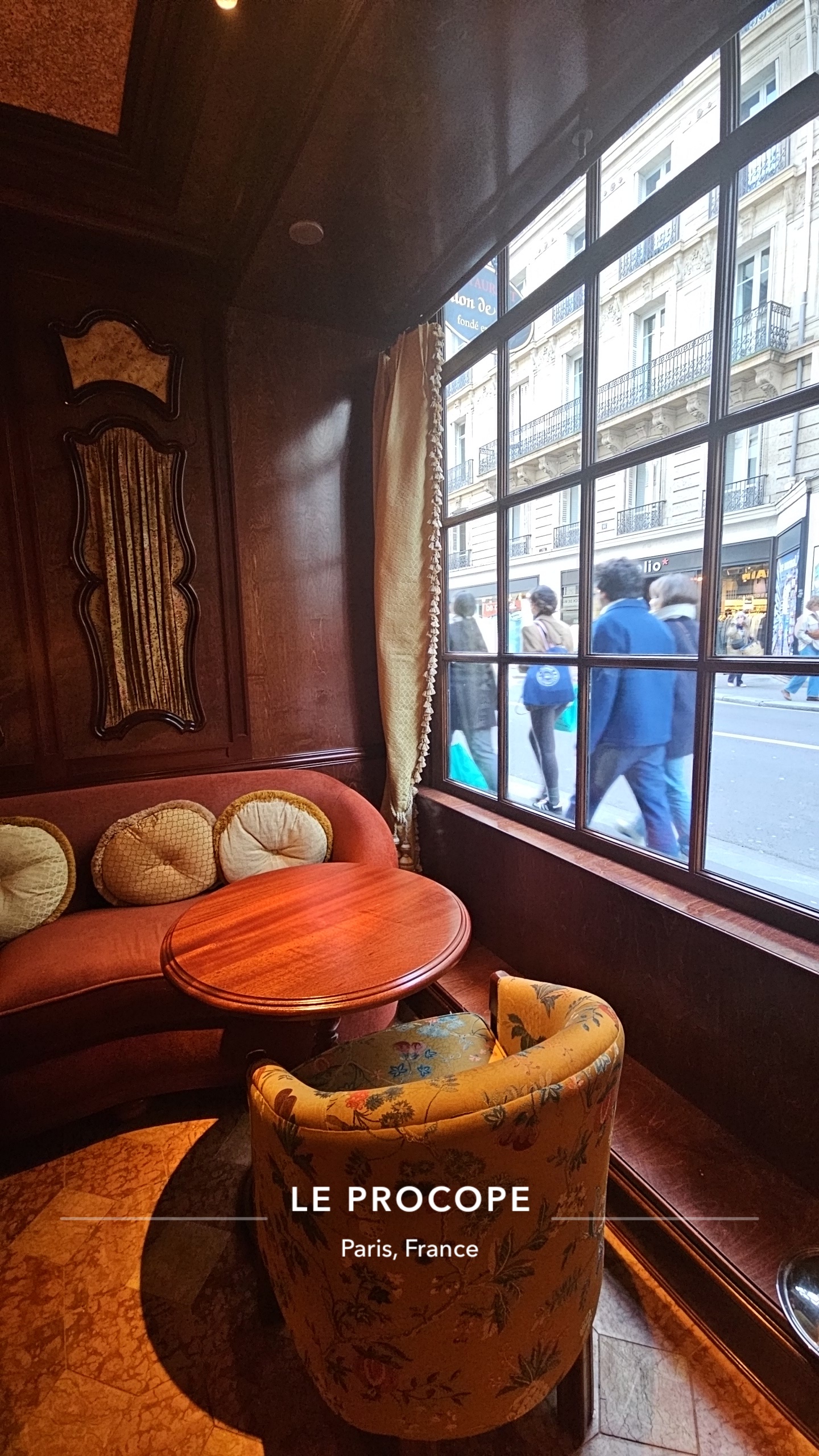 Première visite à deux dans ce lieu chargé d’histoire et certainement pas la dernière ! Service très chaleureux de Michel (à bientôt très cher !) et l’équipe du Procope dans le salon Benjamin Franklin - décoration invitant au voyage historique - cuisine française parfaitement réalisée. Le filet de bœuf des révolutionnaires est assurément un des meilleurs plats de la capitale ! Nous sommes venus et nous y reviendrons !