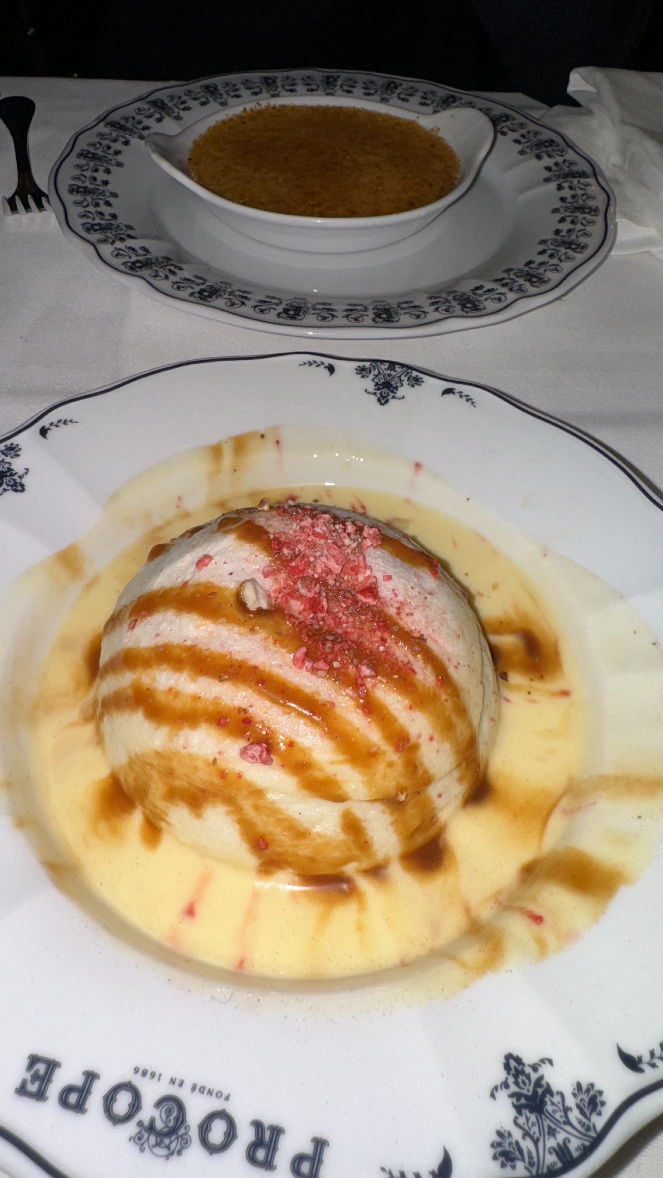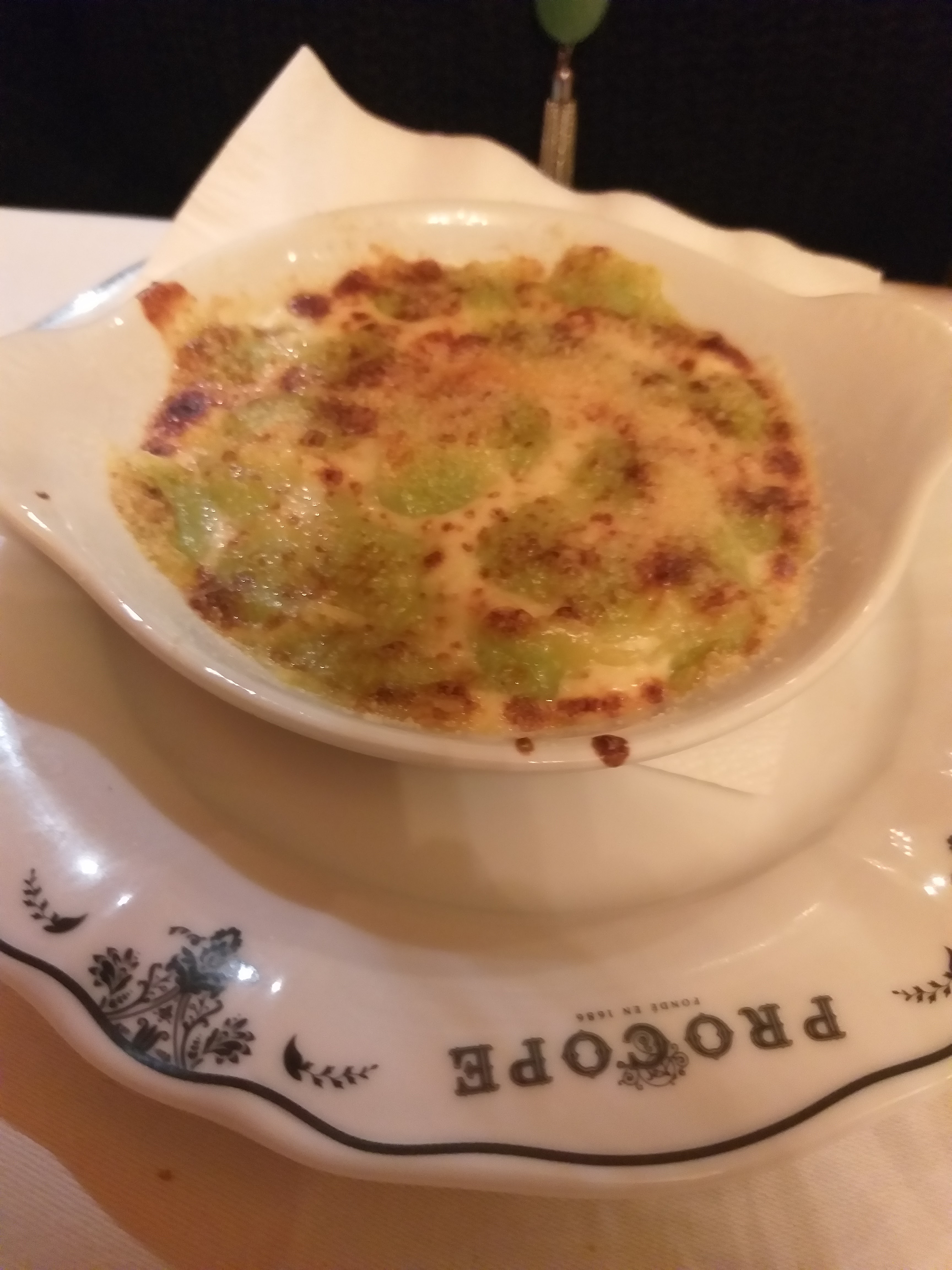 Bonjour Pour cette première visite au Procope nous avons été très agréablement accueillis et installés dans le salon Procope . Le décor respire les détails de l’histoire de cet établissement depuis sa création. Les plats et les desserts ont été très goûteux et gourmand avec un service impeccable et très chaleureux . Nous avons été séduit par ce restaurant. Au plaisir de revenir pour une autre occasion . Merci à vos équipes.