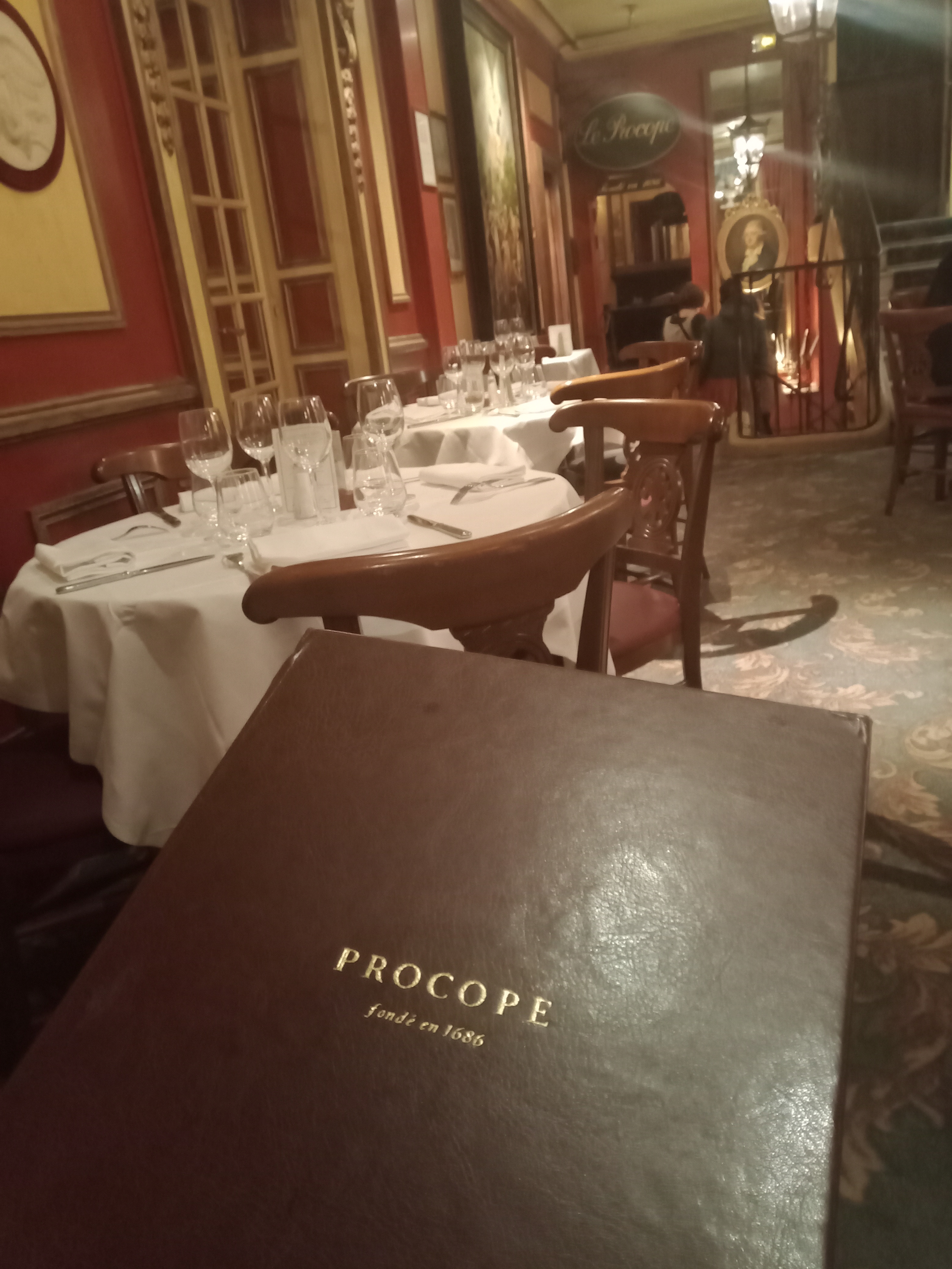 Le dîner c'est très bien passé. J'ai voulu faire découvrir à une amie coréenne un lieu typique de Paris. Cela a eu son effet! Les plats étaient bon. Nous avons pris en entrée du foie gras, des escargots, la soupe d'oignons, les oeufs mayonnaise façon Procope. Niveau des plats on a pris la joue de boeuf braisée, le filet de boeuf des révolutionnaires, le vol au vent de volaille mais au final on a reçu un onglet de boeuf. Il n'y avait plus de volaille... On avait pas été prévenu. Petit point à revoir de ce côté là. Juste prévenir en avance! Hormis cela les plats étaient bon! En dessert, l'île flottante, la crème brûlée, le moelleux au chocolat et le millefeuille aux fraises. Tous bon! Rien à redire! Nous avons fait un erreur lors du paiement et l'un des employés nous a prévenu et remboursé la différence ! Merci à eux pour cette vigilance ! Ils auraient pu tout garder! Mon amie était ravie en sortant du restaurant. Elle a apprécié tous les plats qu'on lui a fait goûter !