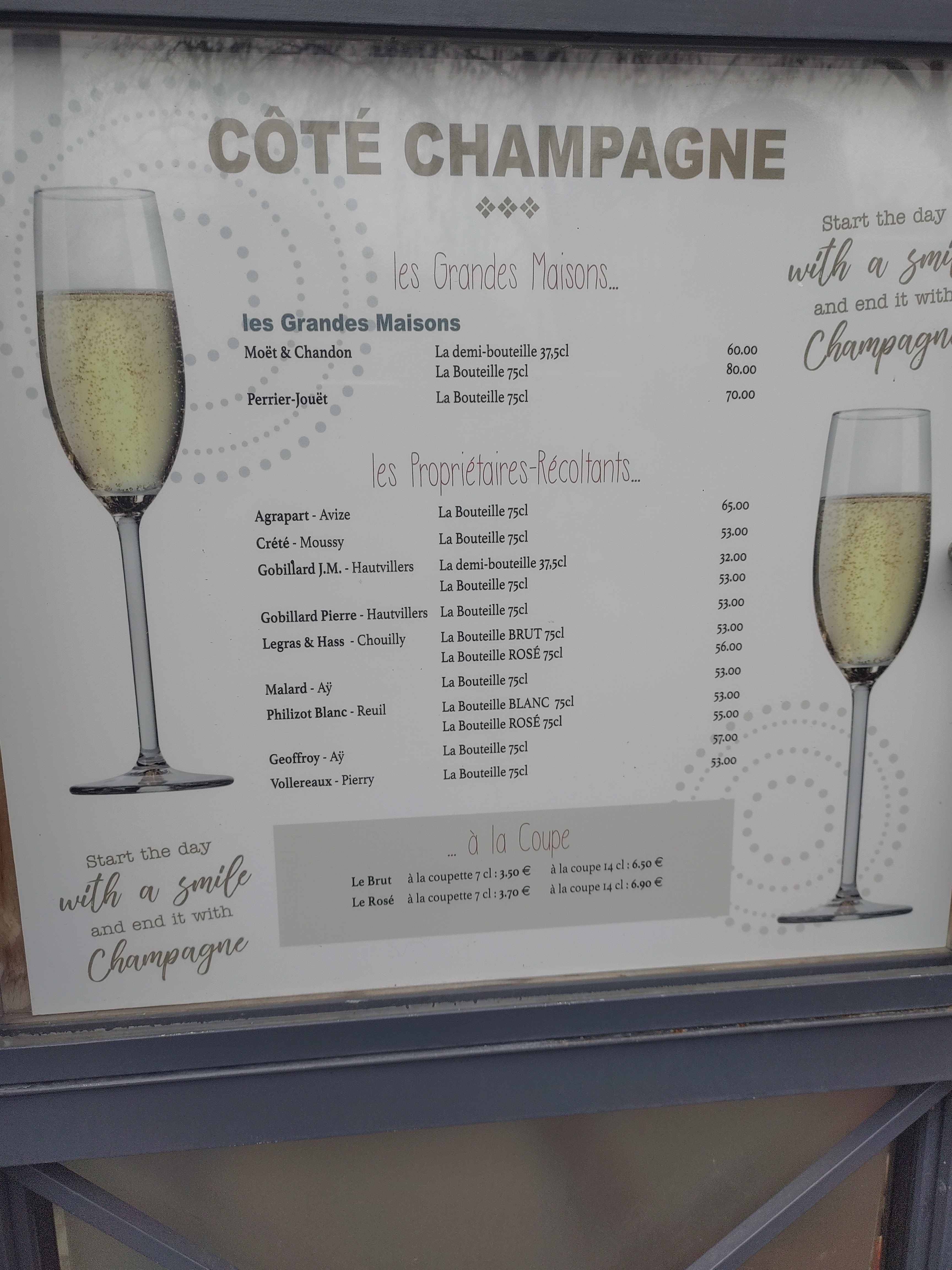 Accueil génial et repas excellent même à petit prix, champagne excellent, je recommande