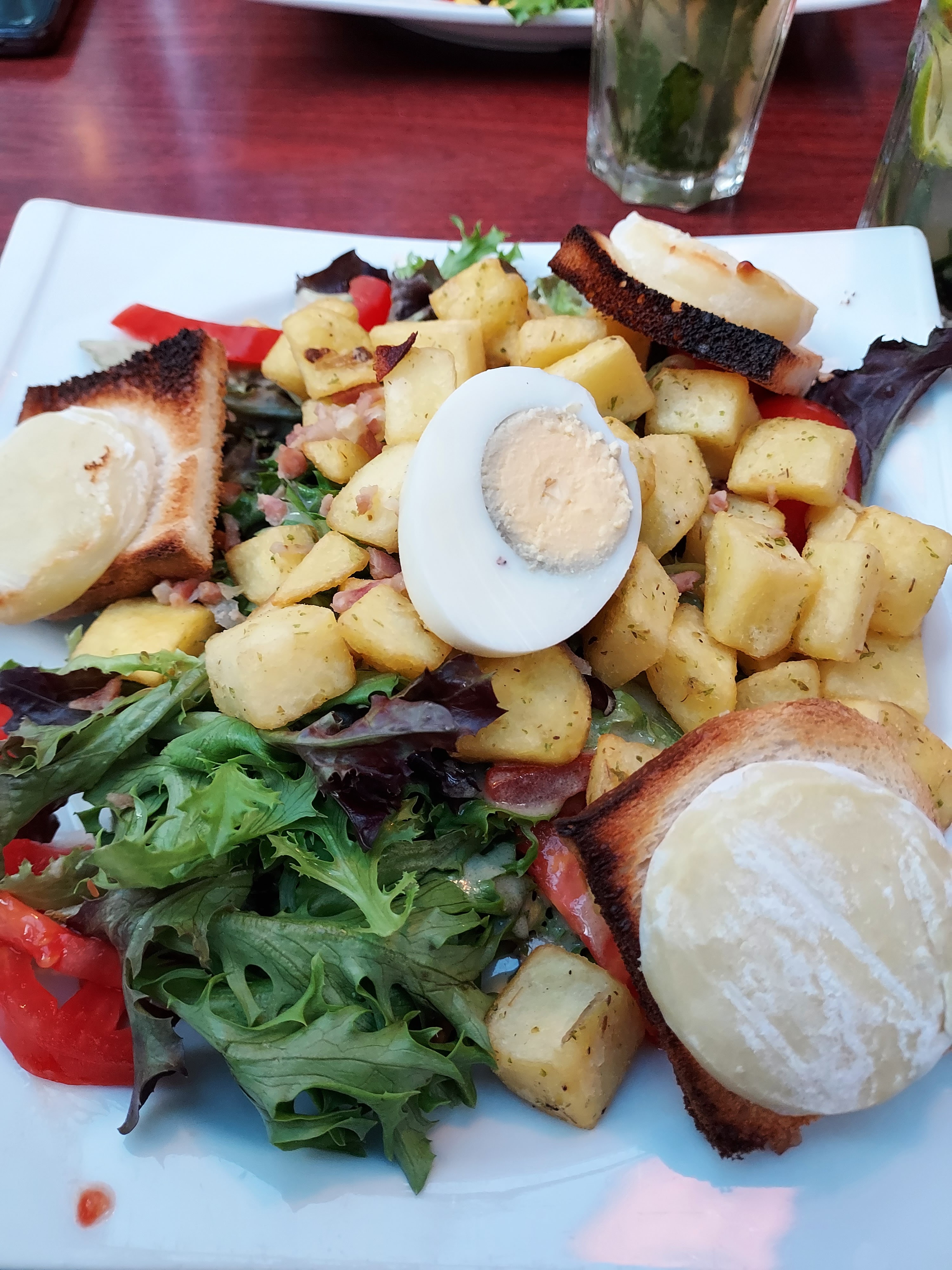 Très décevant tant sur la nourriture que sur le service. Question service : la bouteille d'eau gazeuse n'a pas été ouverte et nous n'avons jamais eu le pain. Question nourriture la salade était très loin d'être fraîche (dans toutes les assiettes) et mal lavée, les pommes de terres sautées depuis bien trop longtemps et sans parler des lardons... Attrape touristes.