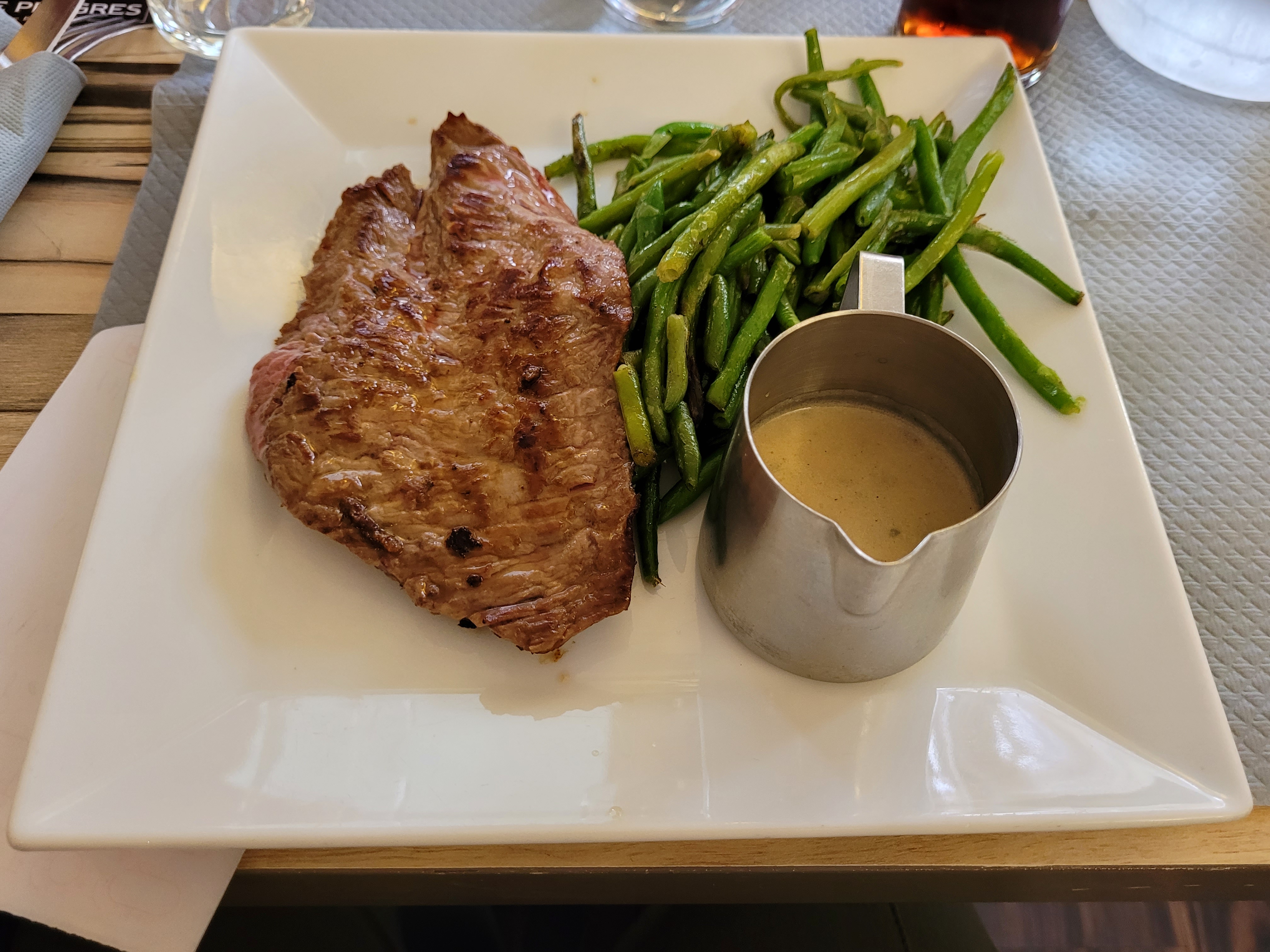 Je ne recommande pas.assiette triste pour un simple steack frite,sans salade ni tomate,.un plat sans vie et qui ne donne pas envie