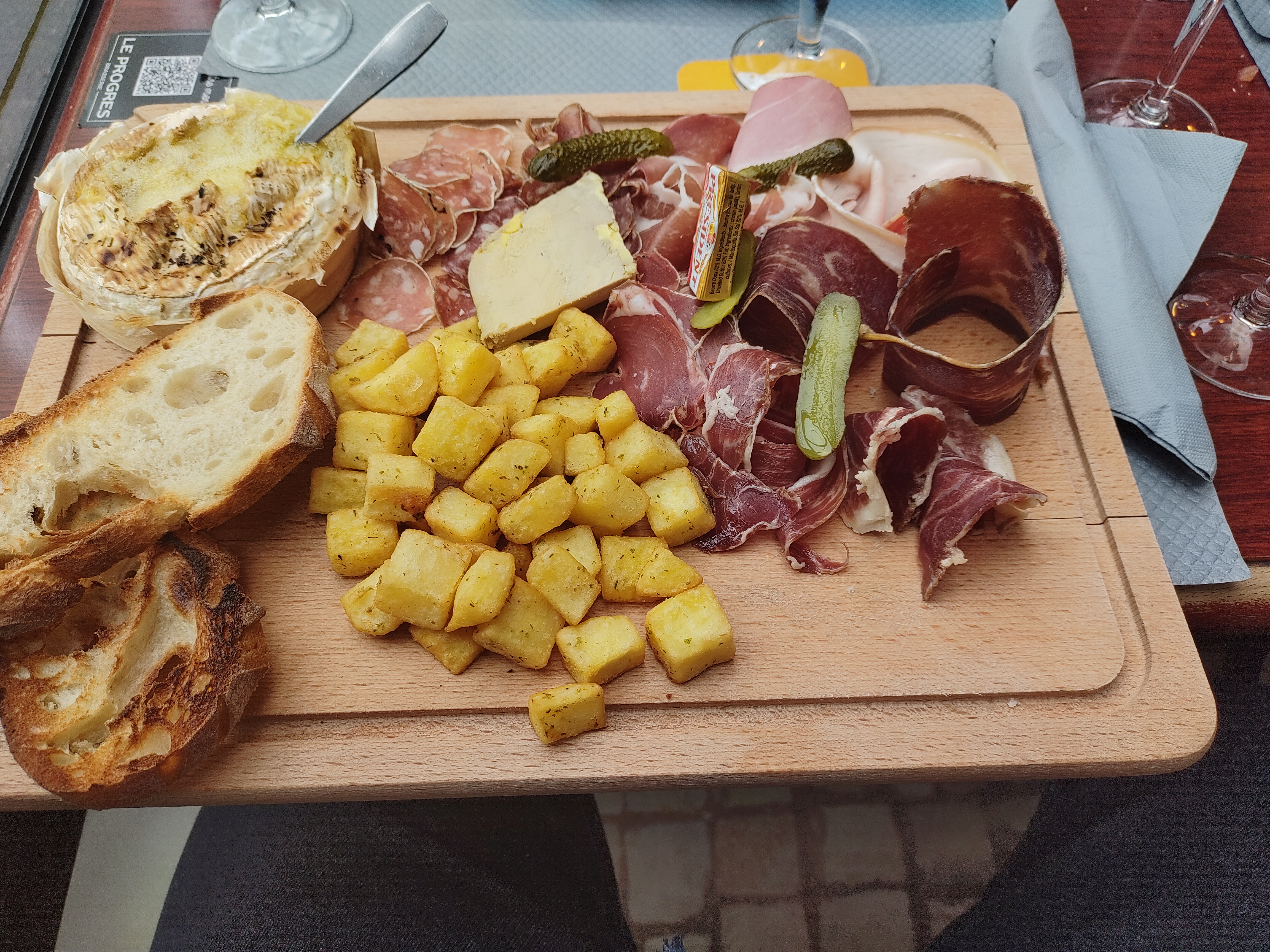 ambiance bistrot, ouvert le dimanche, un luxe actuellement 😅 nous avons dégusté un camembert rôti avec du pain grillé et des petites frites, excellent.
