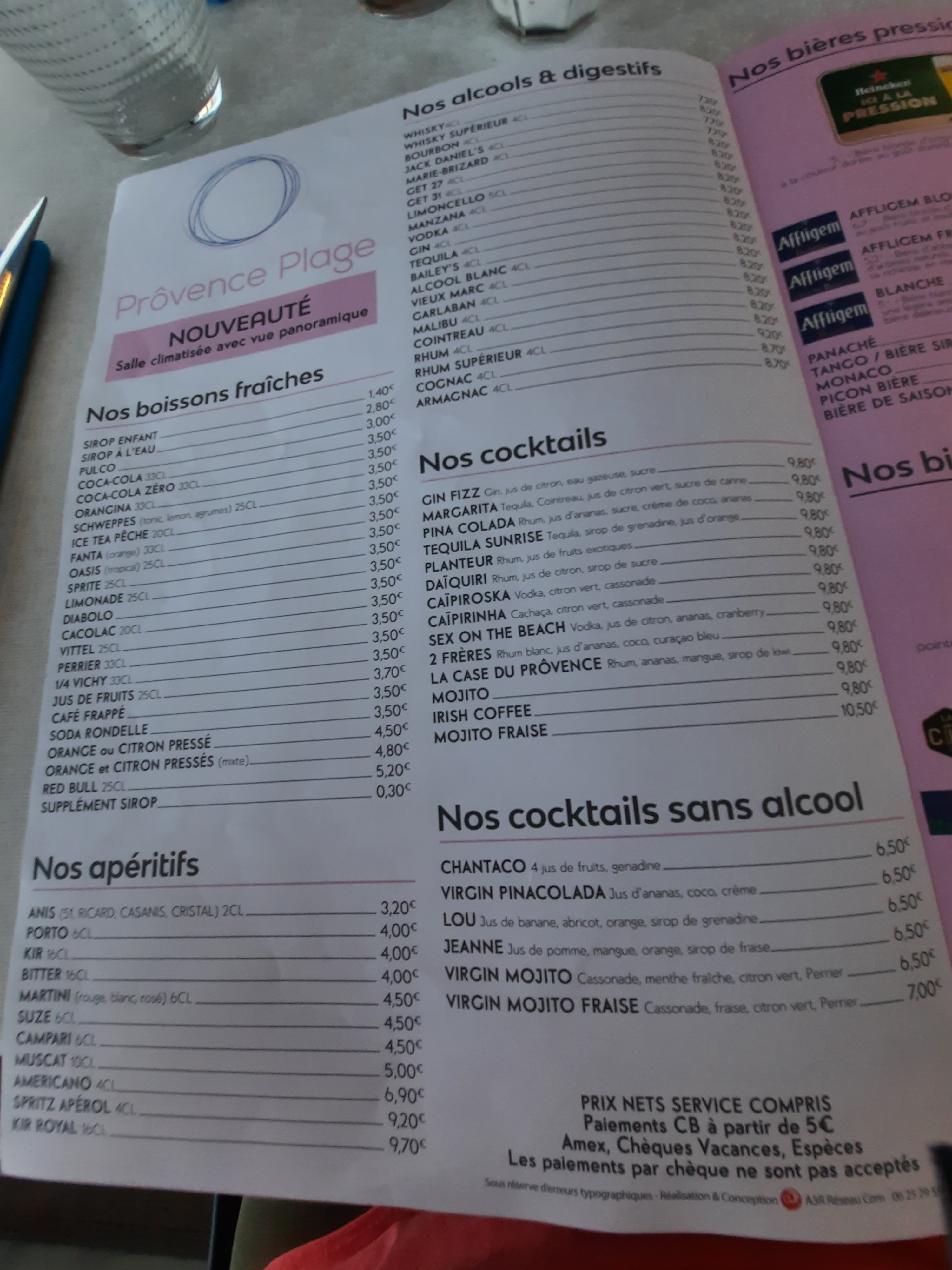 Restaurant Provence plage, baisse de niveau par rapport au printemps. Les pizzas ne sont pas folichonnes ! De l’épaule pour le jambon et grossièrement coupé. Sans goût. Ça reste un resto de plage.