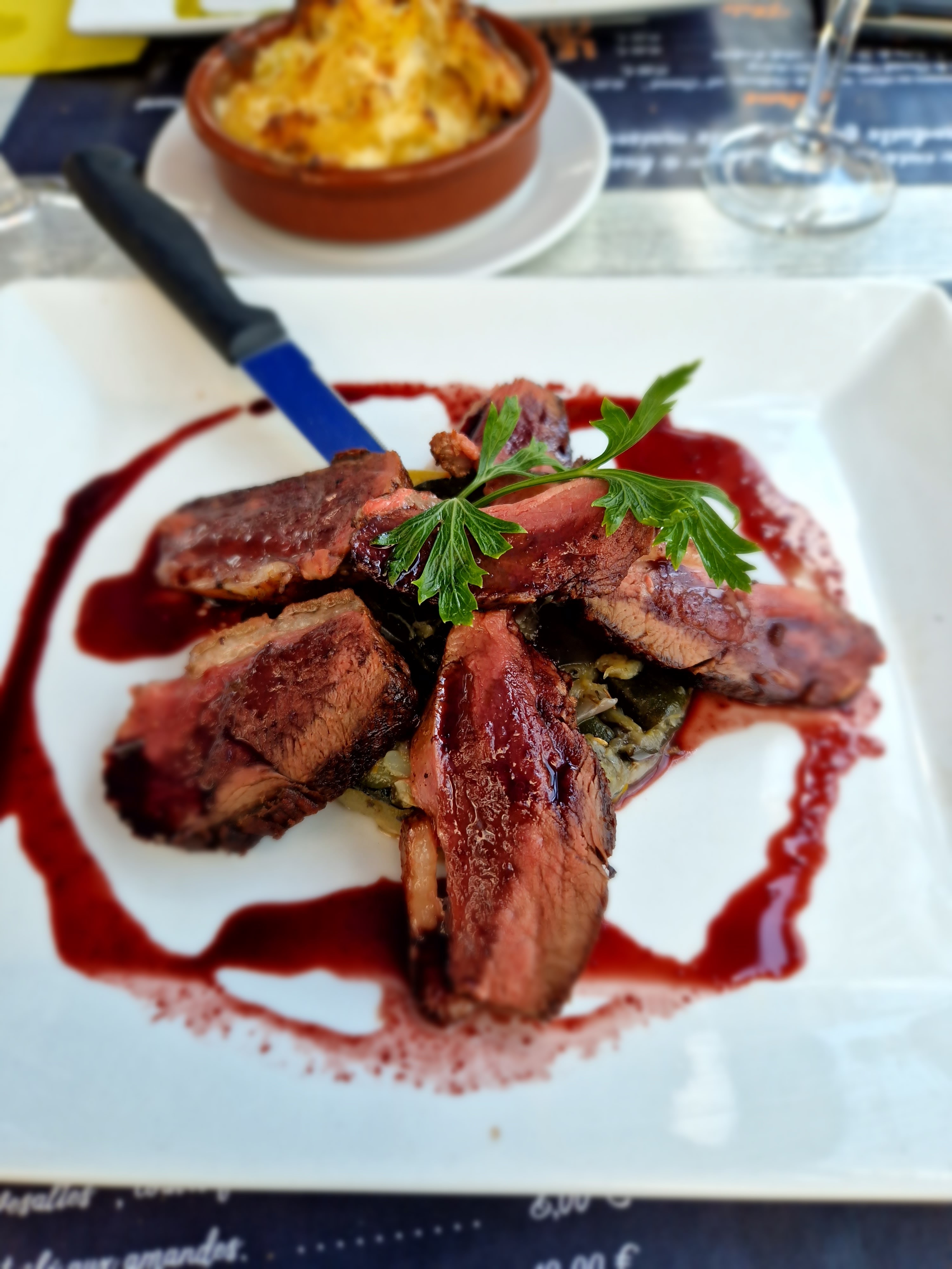 Restaurant très moyen . La propreté n’est pas au rendez-vous ! La terrasse mériterait un bon coup de nettoyage ainsi que le carrelage intérieur menant aux toilettes. Un petit gratin dauphinois à partager à deux servi avec le magret. Un demi croquant sur le parfait glacé au muscat de rivesaltes « inexistant » Restaurant à éviter