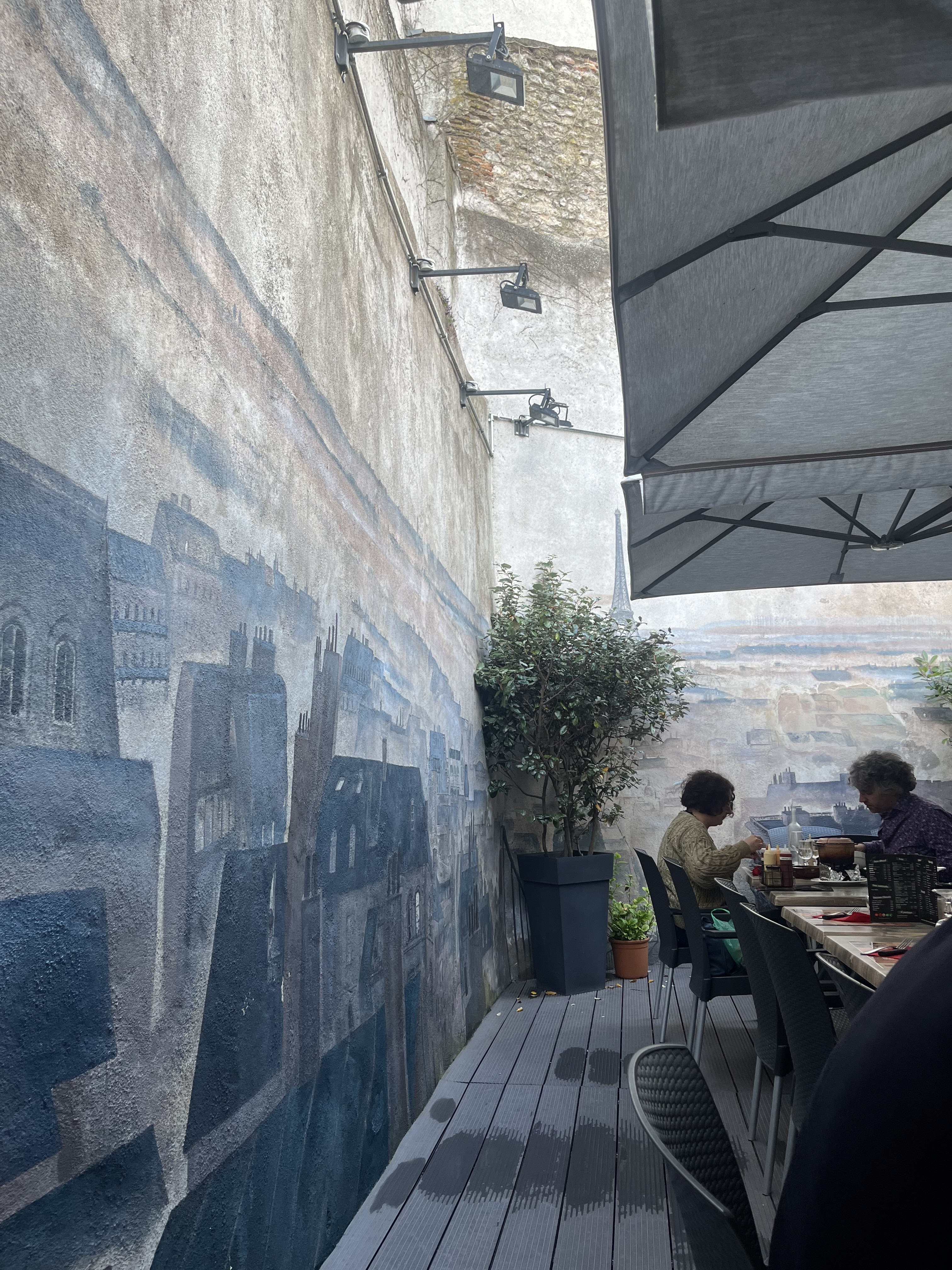 On y mange très bien. Ambiance agréable avec décor parisien dans la cour aménagée qui ne se voit pas de la rue. C est tranquille et on s entend parler.... Assiette copieuse . Cuisine raffinée. Accueil agréable. Je recommande de ce petit resto que quand on voit qu' il y a personne dans la 1ere salle on se dit..... il n y a personne ce ne doit pas être très bon.... mais une petite cour derrière est aménagée.... Seul bémol...on attend longtemps pour commander et entre les plats car le pauvre serveur est tout seul pour une 15zaine de tables...dur dur pour lui....