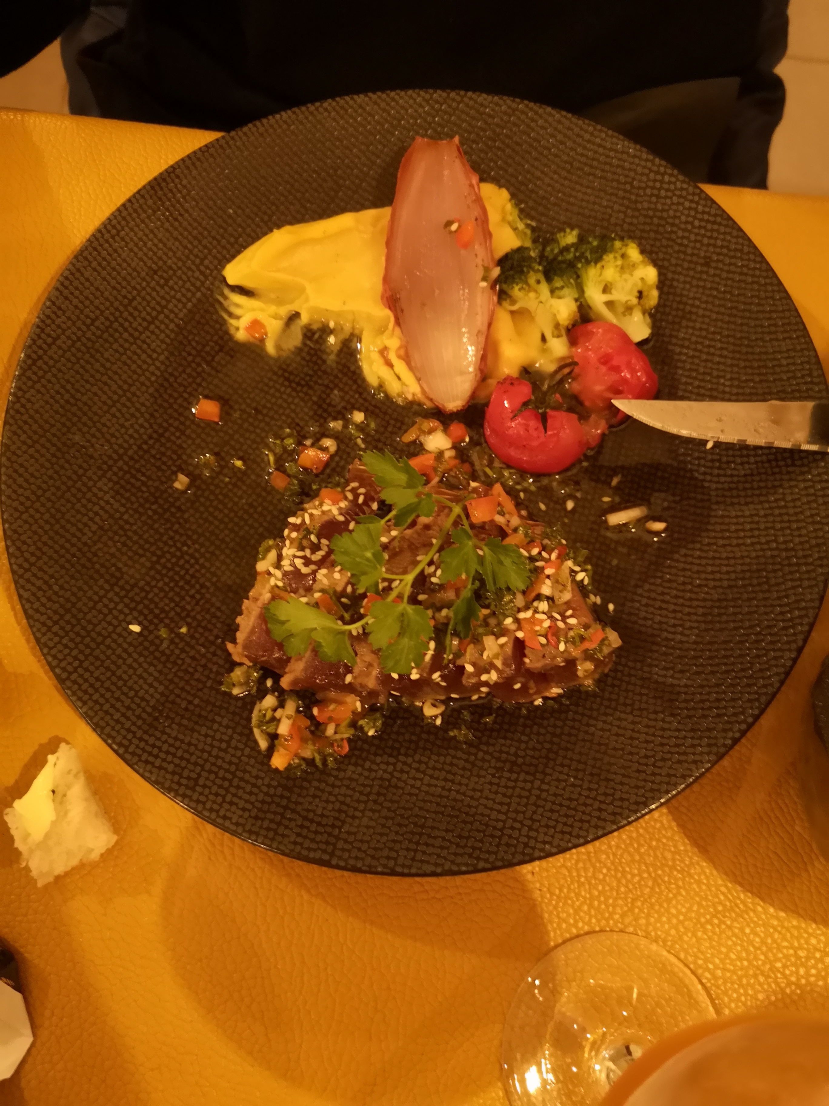 Trouver un restaurant, bon, hors saison, un lundi soir, à Concarneau.... quelle épreuve ! 😅 Et pourtant.... Une fois la petite allée menant jusqu'a ce ptit resto trouvée, le plus dur est fait. Il n'y a plus qu'à s'asseoir et se laisser guider par ses envies 😄 Le cadre est super chaleureux, la musique est top (et pas trop forte 👍🏻)et la serveuse accueillante et plus que pro👌🏻. Un filet de saint pierre savoureux et une délicieuse viande plus tard, on passe aux profiteroles pour clore cette soirée en beauté 🥳 Voilà une soirée qui fait du bien 😊