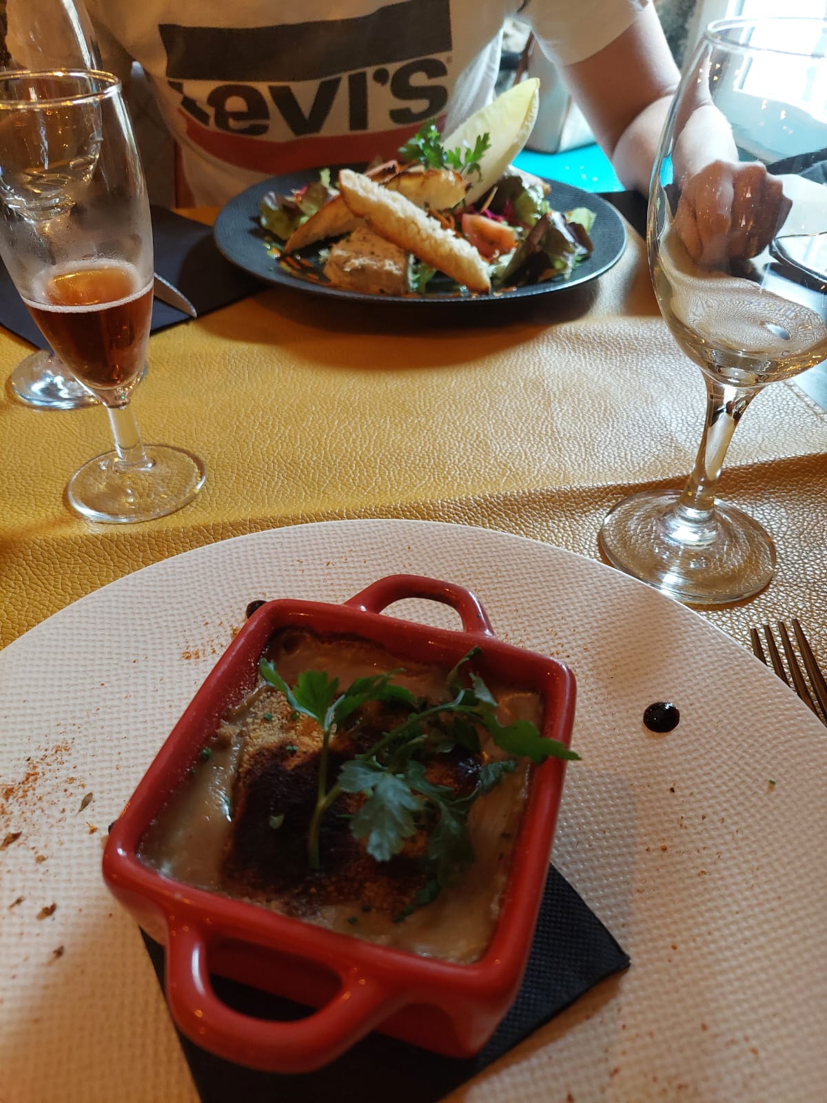 Magnifique surprise, caché dans une petite ruelle, après avoir hesitez car il fesait très beau et nous souhaitions une terrasse. Nous sommes rentrée à 4 adultes, 3 enfants et une poussette, accueil avec gentillesse, nous avons était installés à l'étage au calme avec les enfants. De l'entrée au désert tous était très bon, frais service chaud, des nuggets et frites maison dans le menu enfant. Des vins délicieux et un prix plus que raisonnable pour la qualitée. Merci pour ce charement moment.