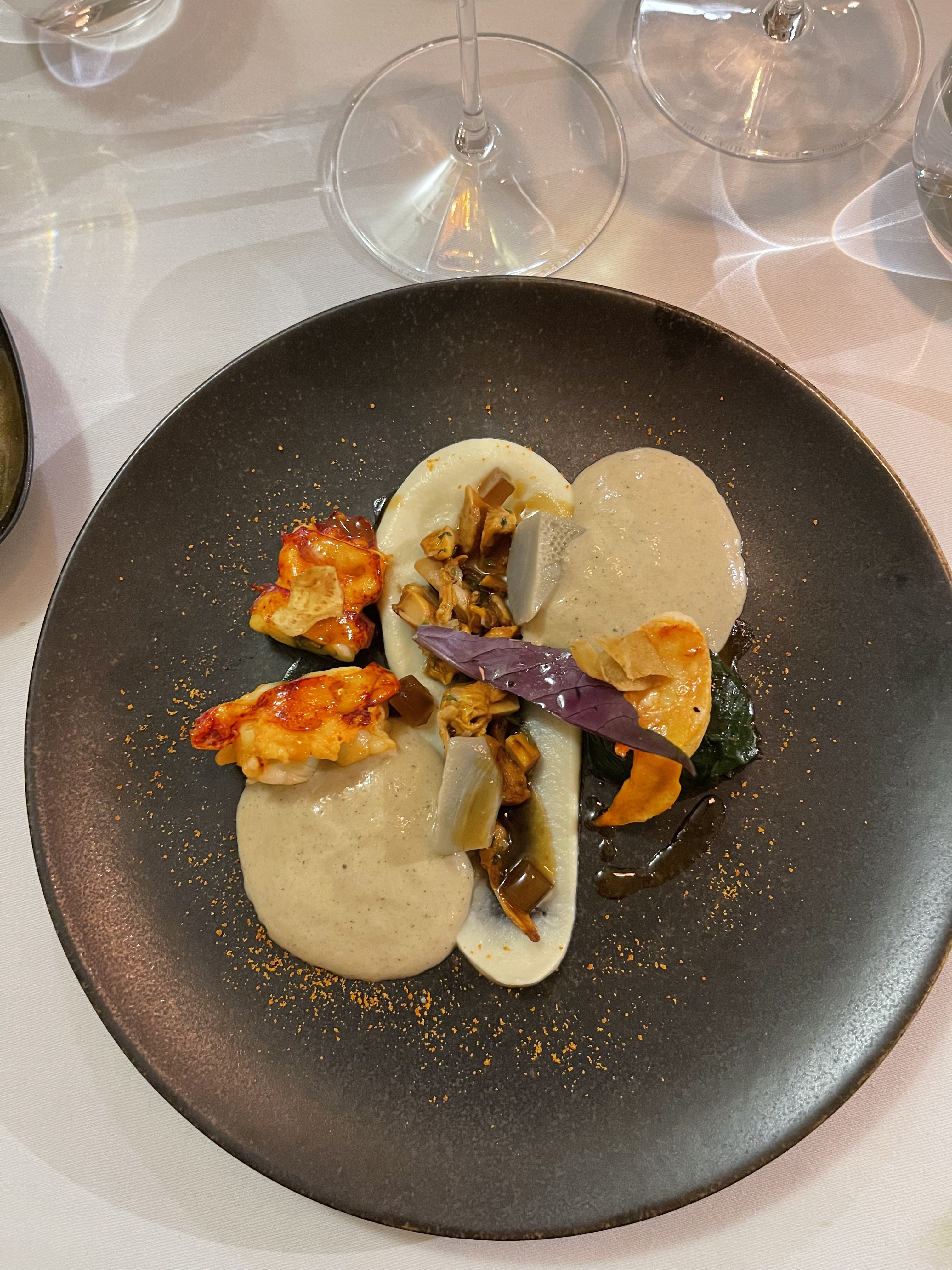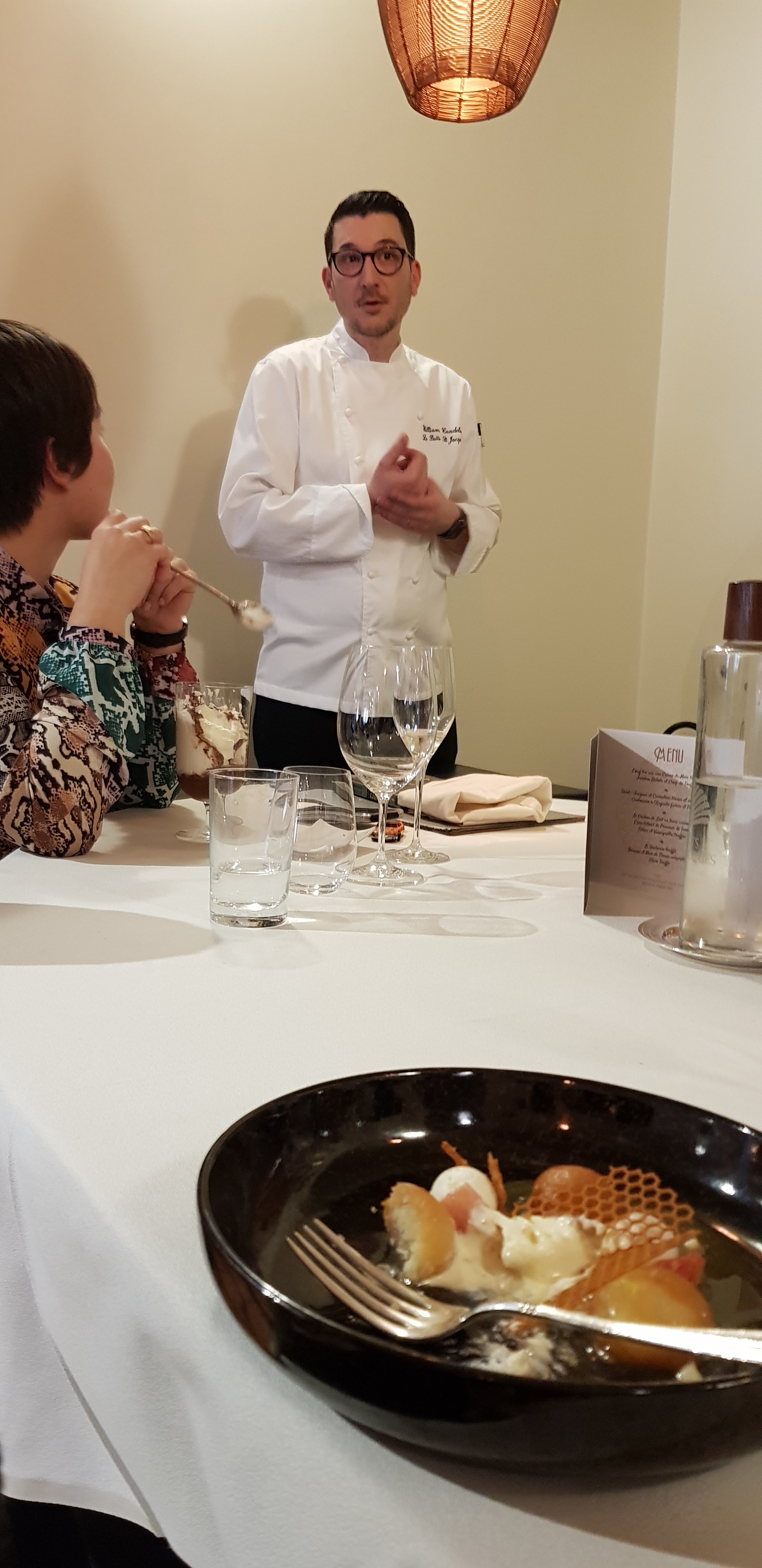 Parfait ! C’est aussi simple que ça… Nous avons choisi l’accord mets et vins. La sommelière a un certain talent pour partager sa passion et ses émotions (sans être ennuyeuse ; c’est souvent le cas dans ces grands établissements). Des vins de copains qu’elle connaît et raconte parfaitement ! Le repas est assez long mais très bien orchestré ; on se plaît à deviner et savourer. Un bon moment !