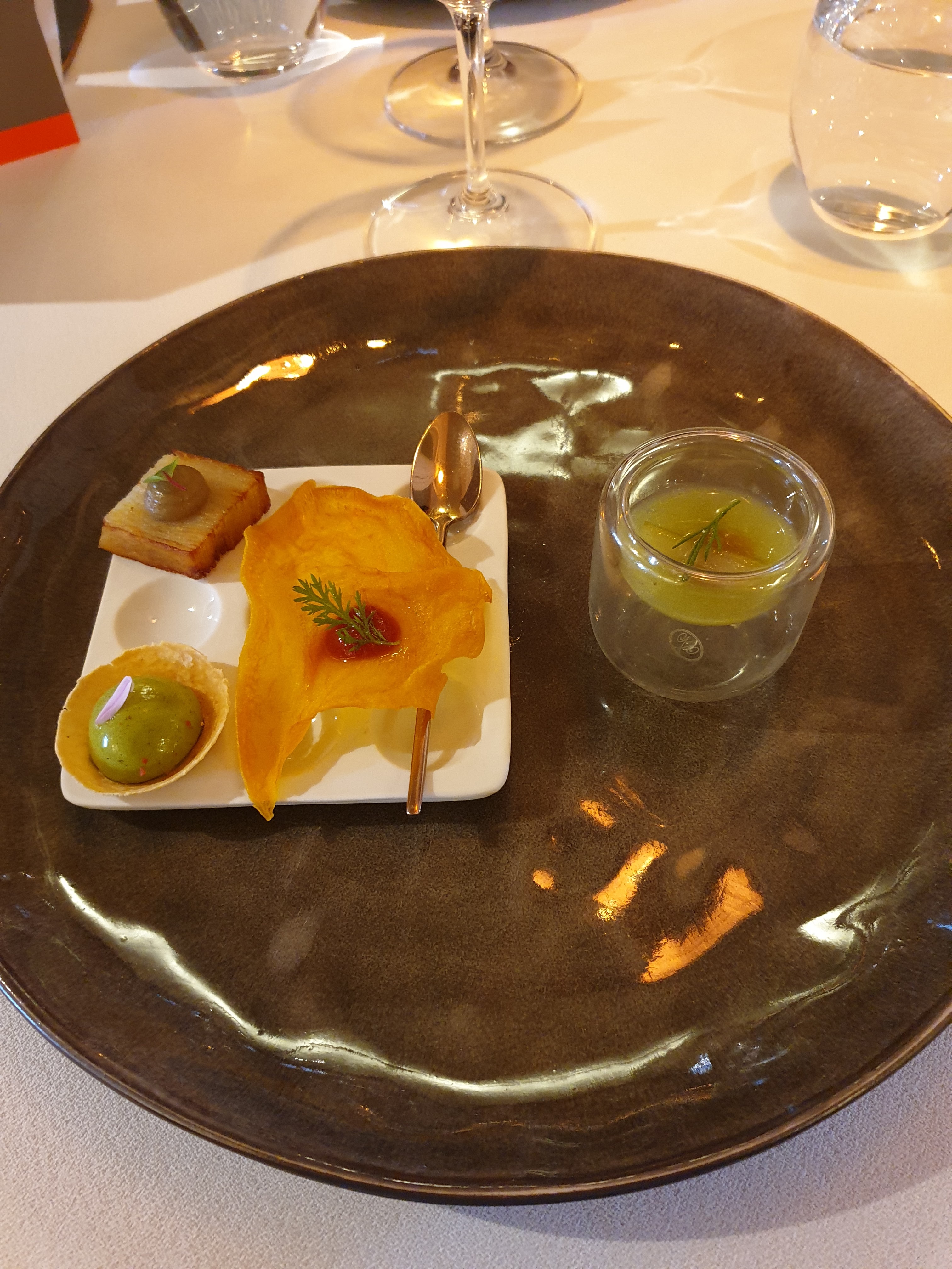 Lorsque nous réservons dans cette classe de restaurant, nous avons quelques attentes. Et bien elles sont comblées sur tous les volets. Dans le menu dégustation en six plats, une surprise en cache une autre. D'ailleurs sans avoir réellement compté nous sommes plus proches d'une dizaine de surprises que de six. Inutile de se poser la question de ce que nous avons le plus apprécier, l'objectif est de suivre le parcours de trois heures pour nous, proposé par le chef. Nous avons apprécié le service, dans les règles de l'art et sans superflu non plus. Un moment privilégié en famille, et comme en classe affaire...le 'commandant de bord' est venu échanger en fin de repas. Les cases sont cochées, merci.
