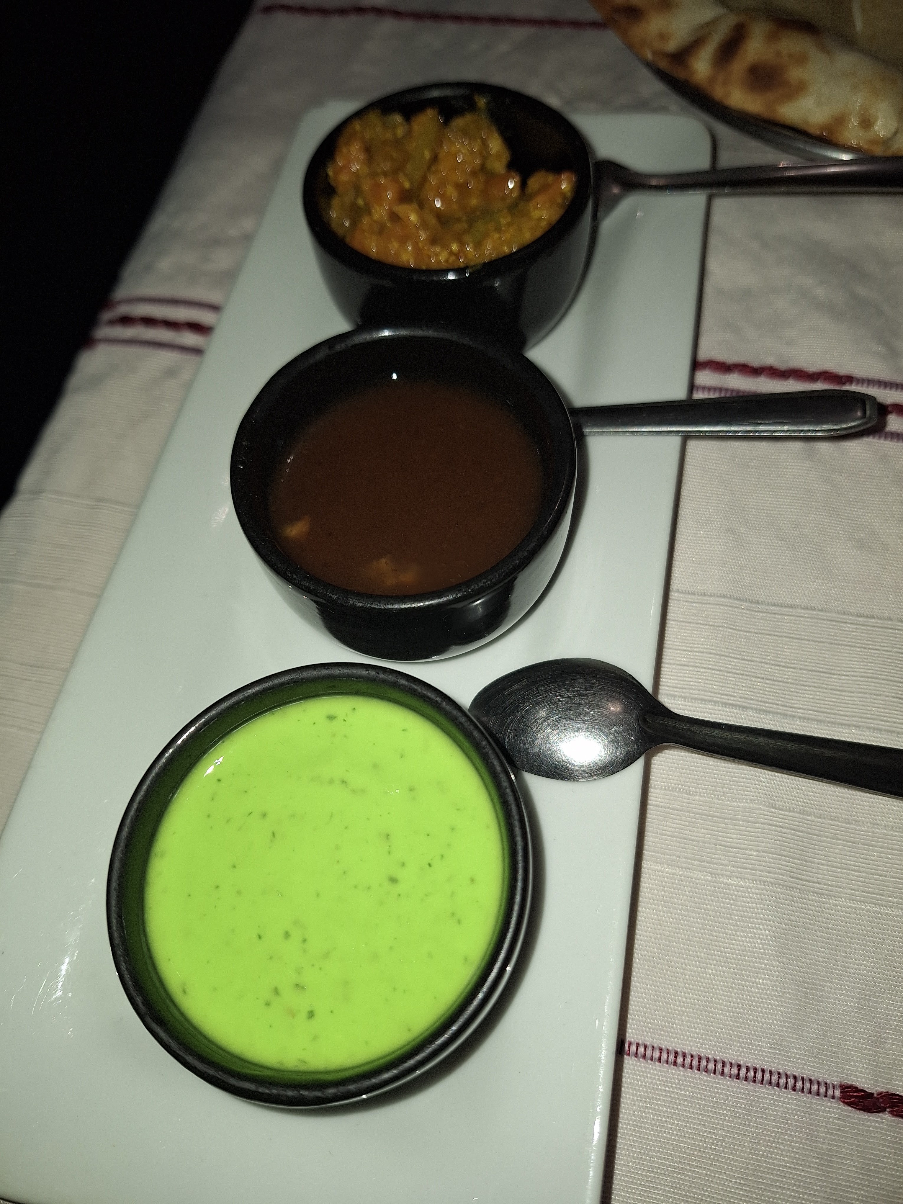 Menu sympa, c est assez bon et les naans au fromage a l ail une tuerie mais accueil froid, le serveur a pris mon cocktail avant que je n ai eu le temps de le terminer, il nous interrompt souvent pour débarrasser alors qu' on mange encore nos plats, faut travailler la dessus.