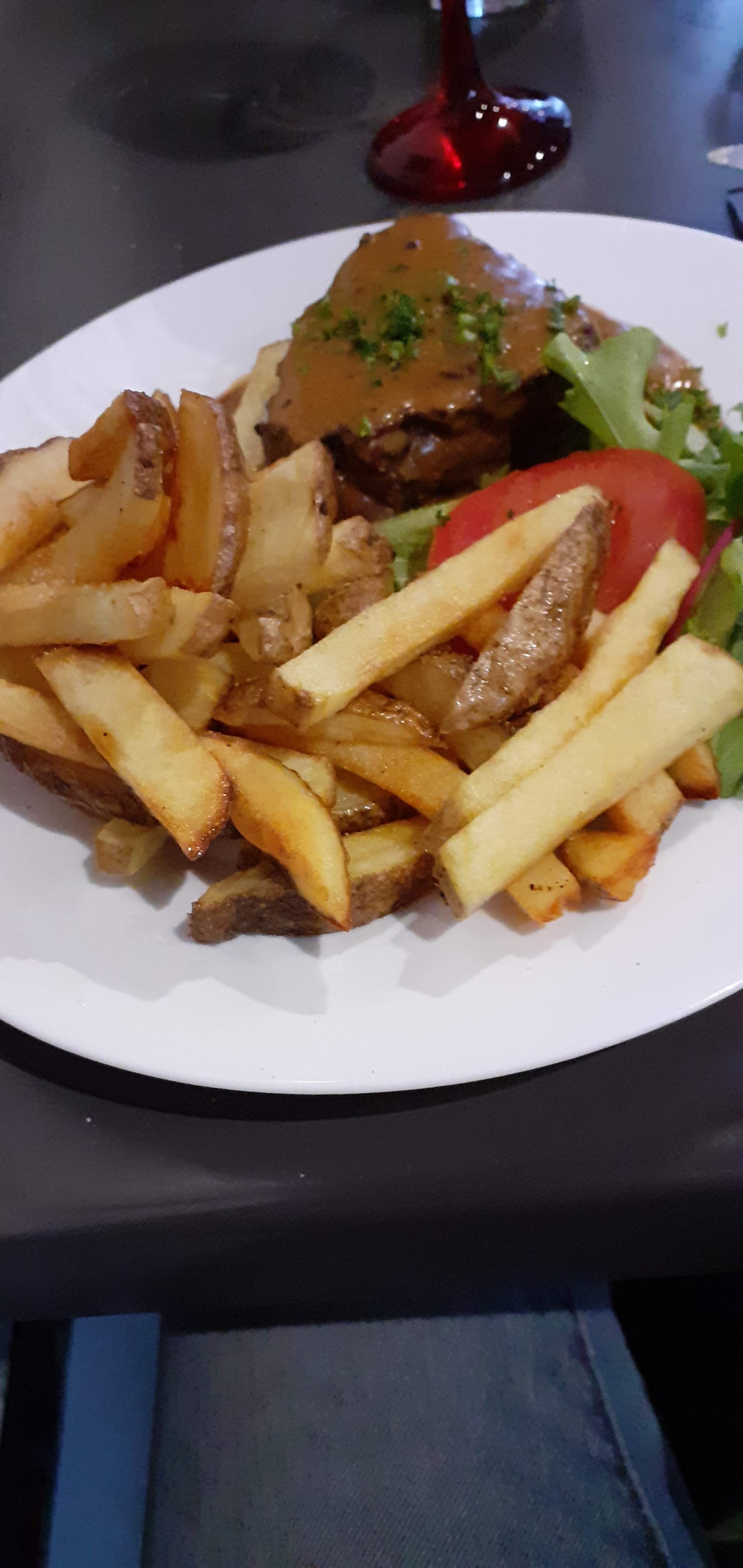 Acceuil chaleureux, plat principal fait maison, rapidité du service, très bon rapport qualité prix, garniture pas assez suffisant