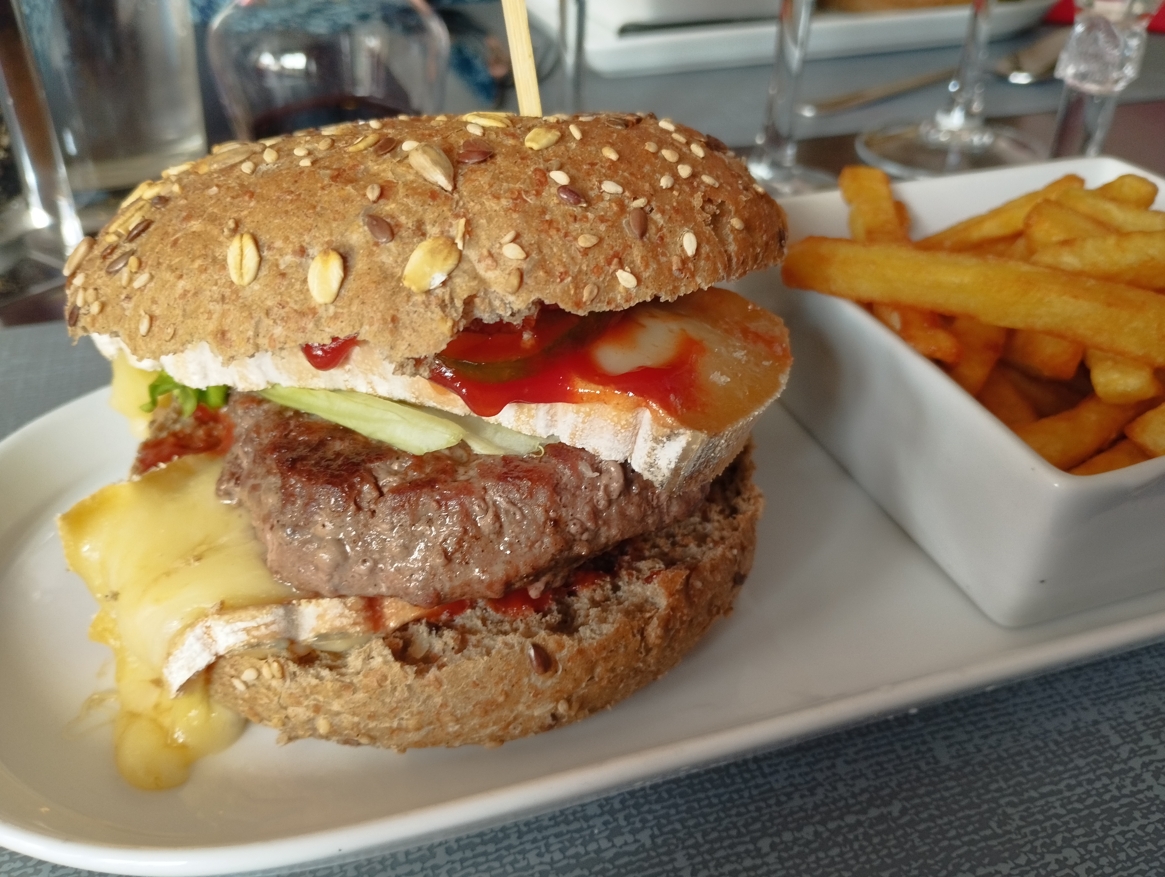 Déçue par la cuisine et préparation des plats, malgré une viande très bonne qualité mais des frites trop cuites, marron, imbibees d huile et immangeables.prix trop élevé au regard du plat proposé.