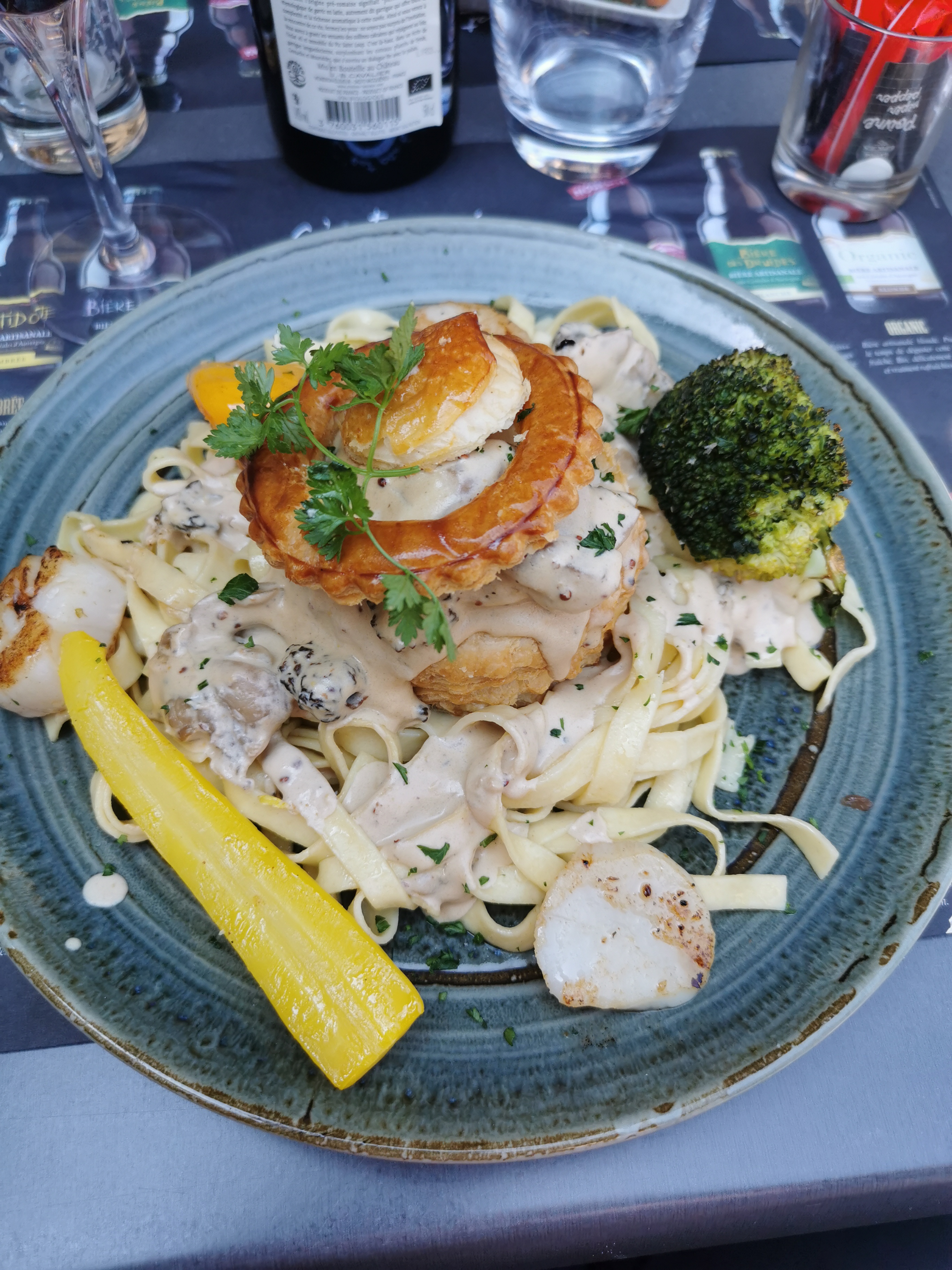 Restaurant très sympa, déco, ambiance, plats, patron, serveur. Tagliatelles aux gambas et noix de saint Jacques terriblement bonnes, idem pour le fondant au chocolat. Serveur de très bon conseil pour les plats et le vin, très agréable, souriant, appréciait la plainsanterie. Juste une petite réserve pour la serveuse qui a pris le relai à moment donné, mais le reste était tellement top que ça n’a pas gâché ce moment en famille. Envie d’y revenir pour goûter d’autres plats car la carte est alléchante.